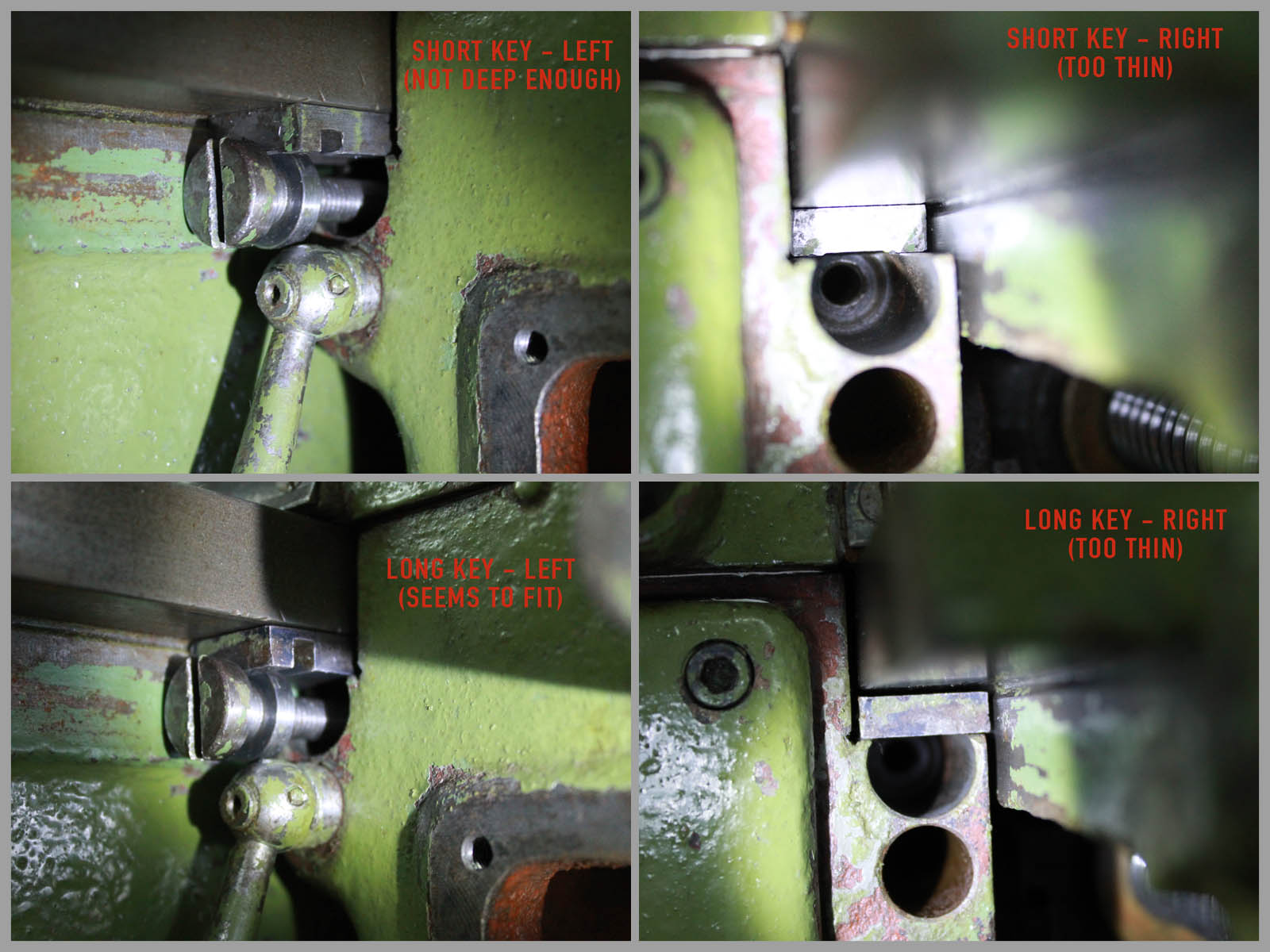 2 - lathes.co.uk říká, že tabulka může pohybovat 640 mm. To na mě v žádném případě neplatí, protože (zeleně označené) nit těsně přiléhá a dosahuje bronzové matice… Jak se může stůl pohybovat o 640 mm, když jsou závit 68 cm a vzdálenost mezi dvěma maticemi je 35 cm? 68 - 35 = 33 cm pohyblivý. Co jsem chybí?