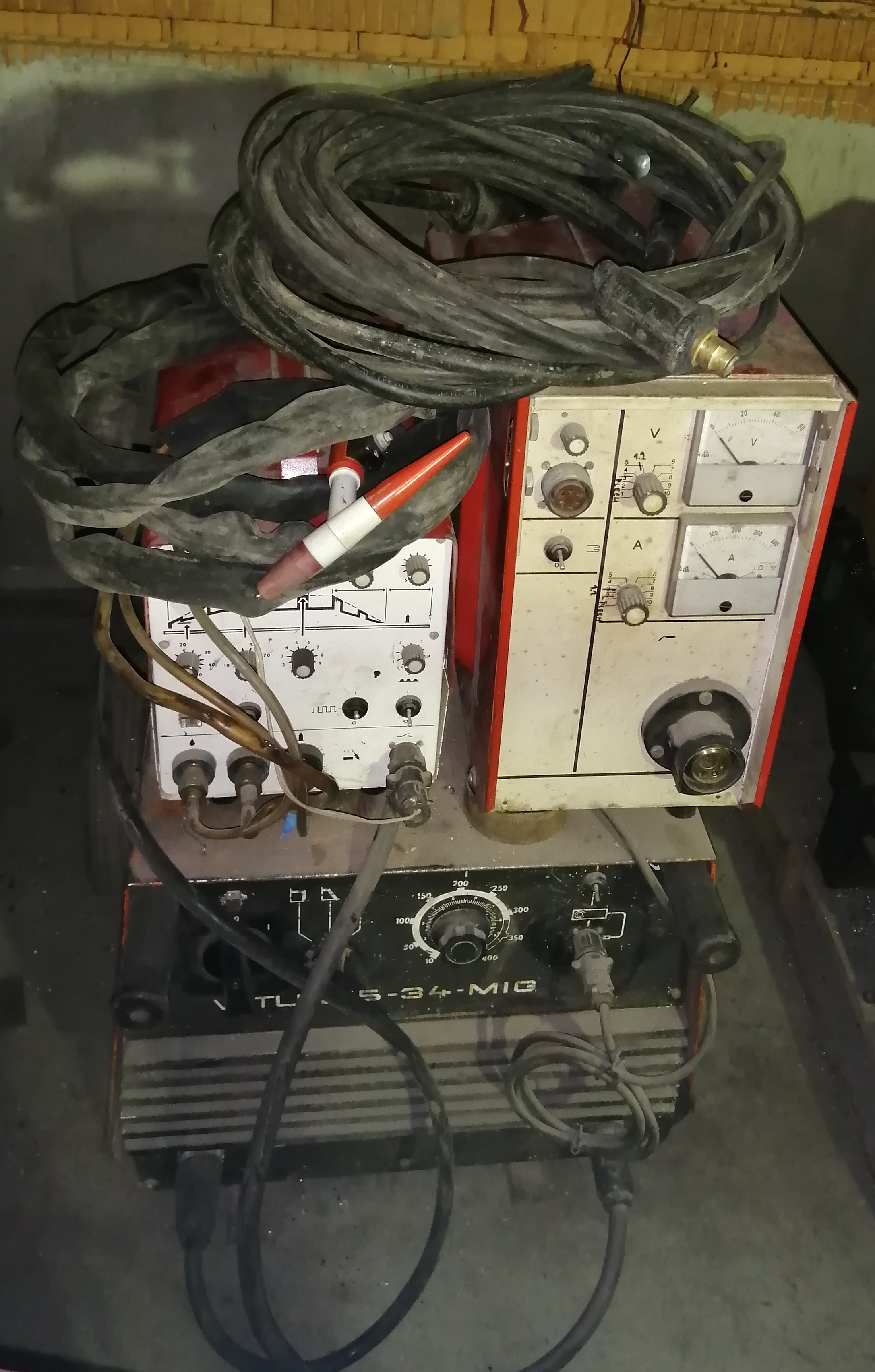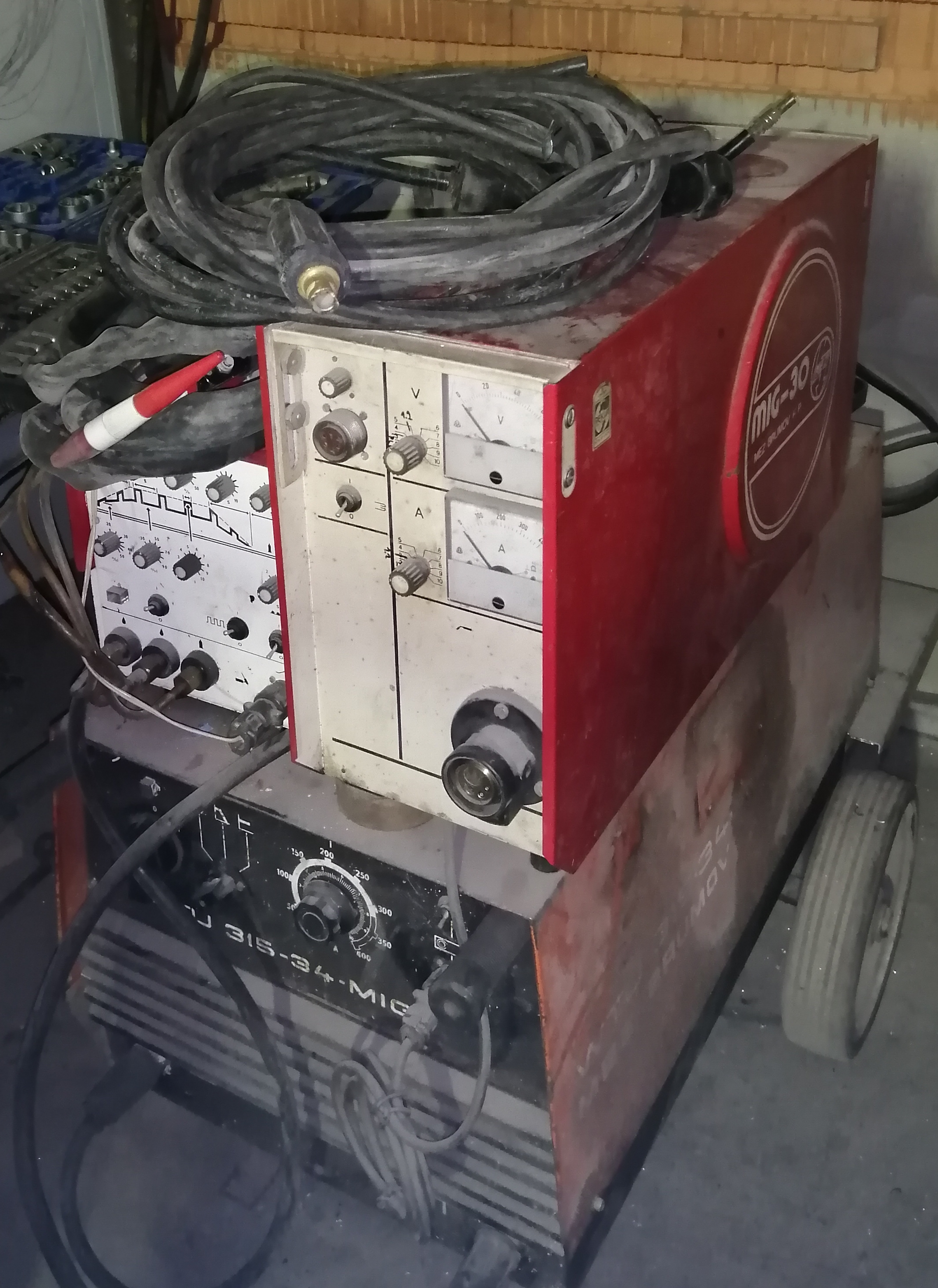 Nabízím na prodej svářečku WTU 315-34-MIG, včetně nástavby MIG 30 a TIG 30. Vše funkční, do poslední doby se s tím svařovalo. Ke svářečce přidávám kabely k MIGu i k TIGu a ještě jednu nástavbu MIG 30 bez eurospojky (není na fotce).Ke svářečce je dodělán držák na dvě láhve. Mělo by k tomu být i dálkové ovládání (nikdy jsem jej nepoužil, musím jej najít).