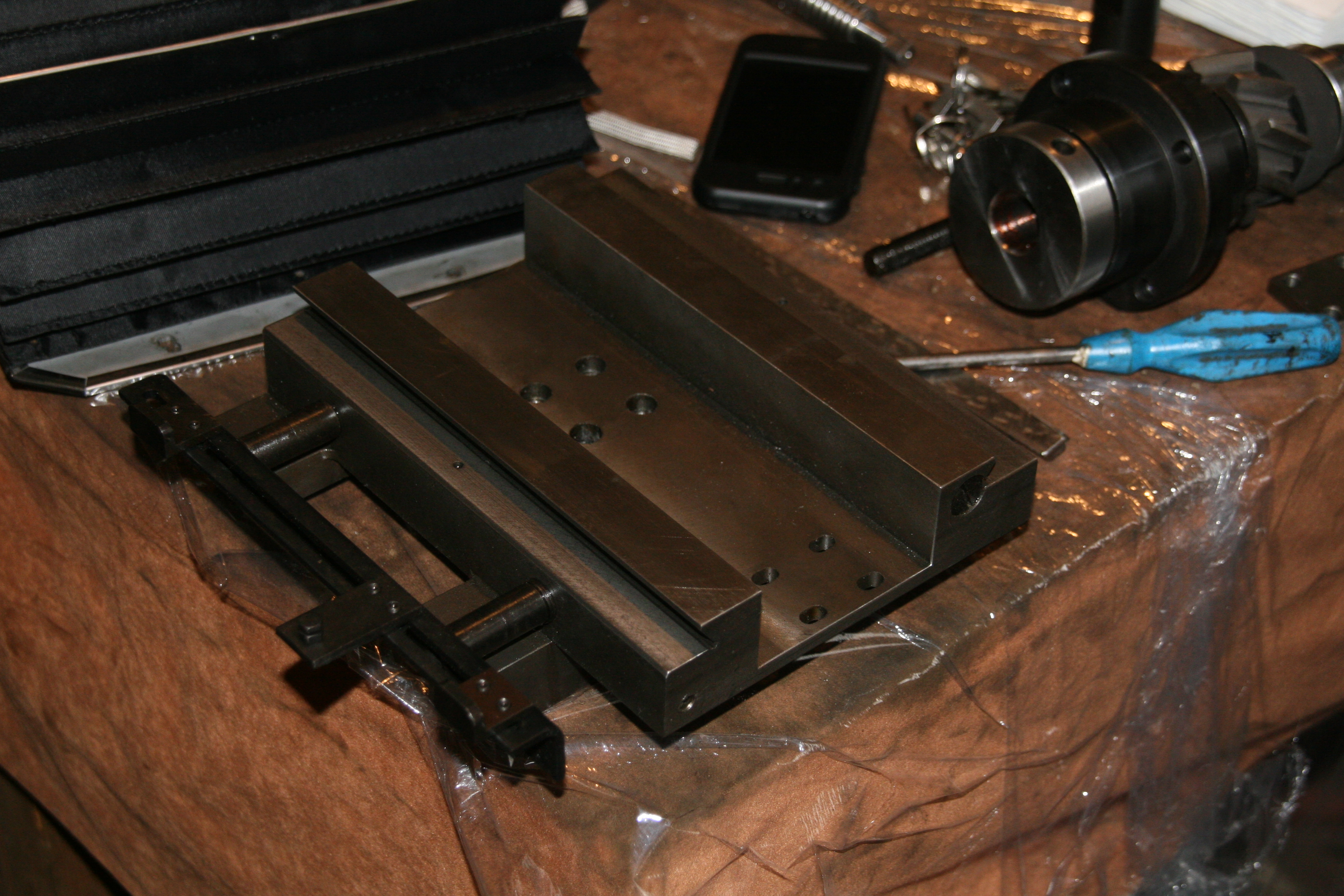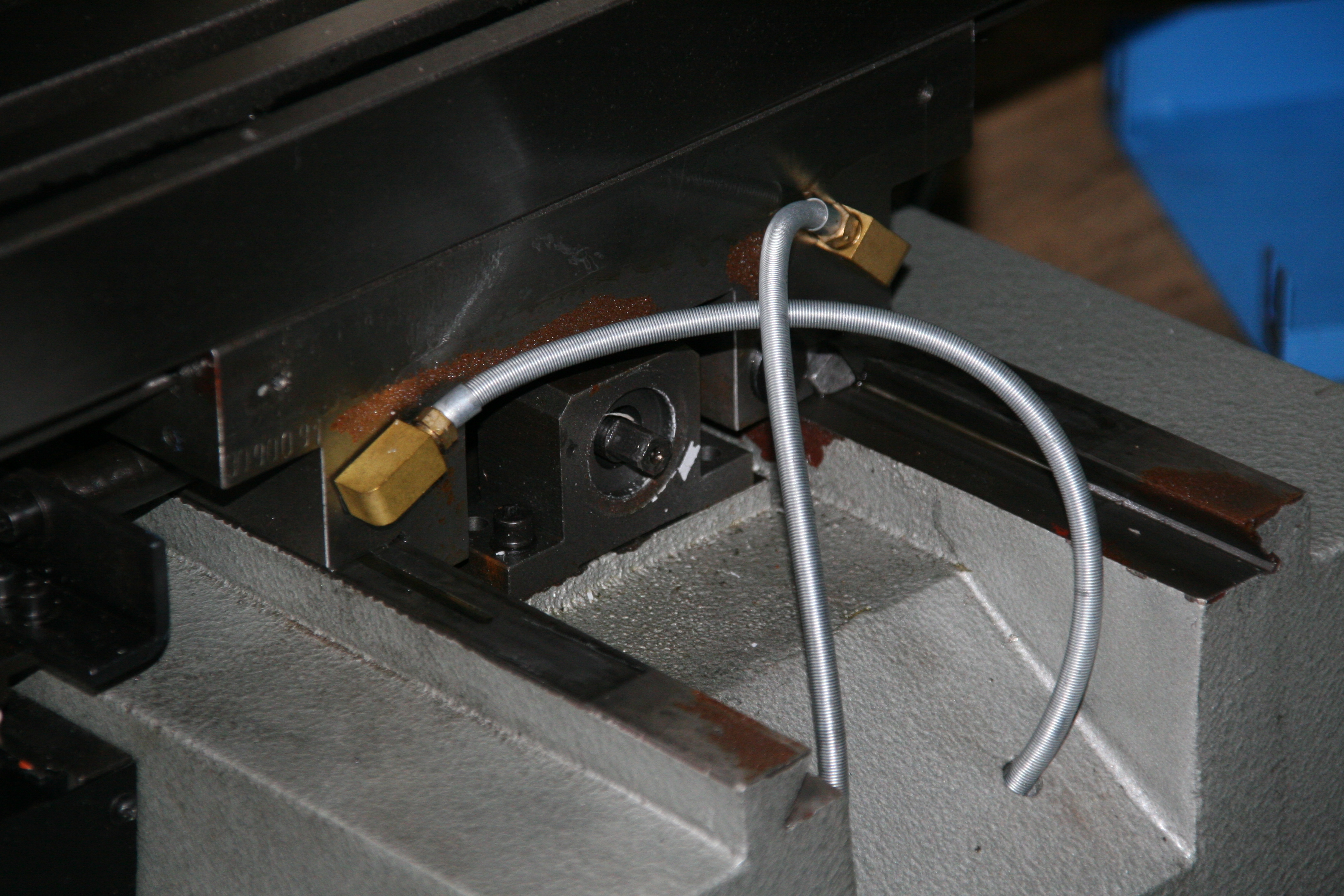 z krizove casti vedeni stolu je treba demontovat trubicky mazani sroubu (viz photo022) a jejich otvory zaslepit
