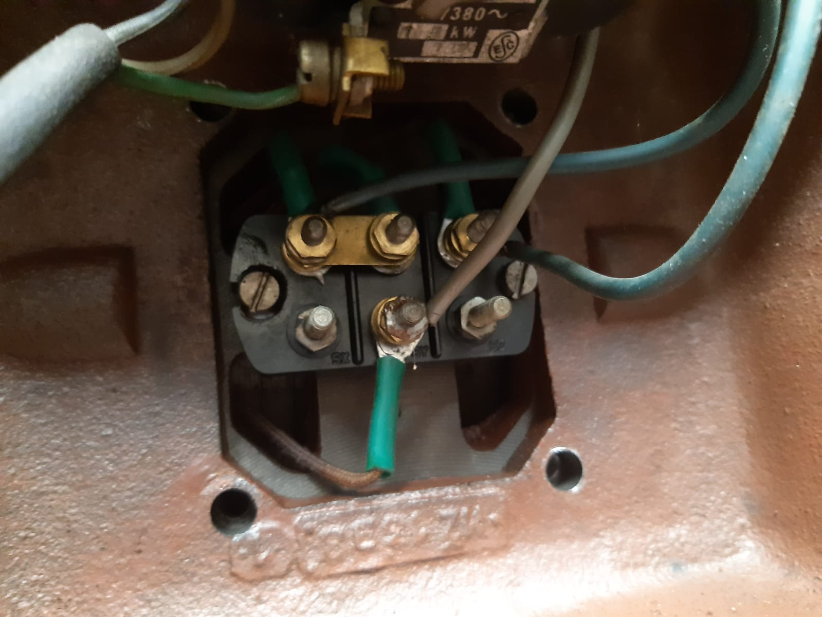 Tak bruska už se točí. Jako správný vědec jsem udělal dvě věci najednou a spravilo se to. Vyměnil jsem drátky, protože u starých už opadávala izolace a na spínači jsem prohodil fáze (nevím jestli se tomu u jednofáze tak říká...prostě jsem prohodil drátky