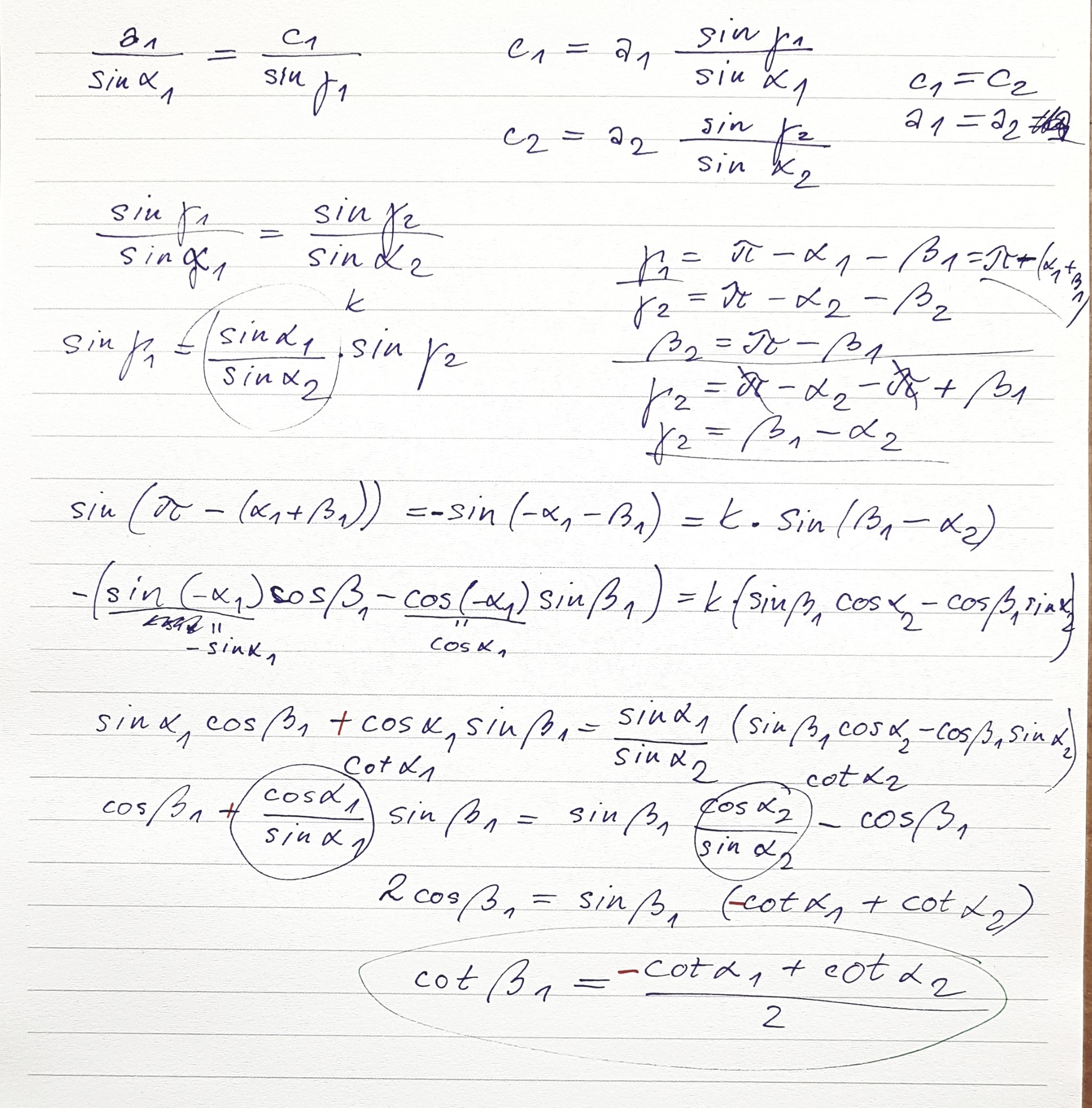 Díky moc. už to vidim. Já se furt motal dokola. tři rovnice o třech neznámých a v nich sin arcsiny a ja nevim co jeste a ono se na to stačí podívat z jíneho uhly a je to.