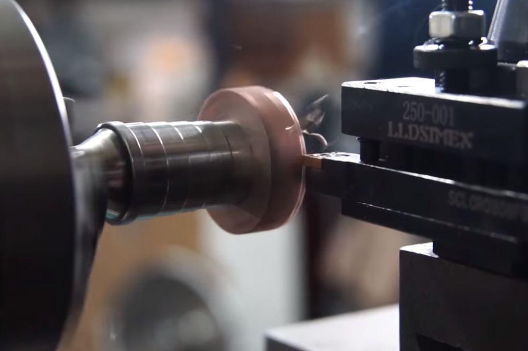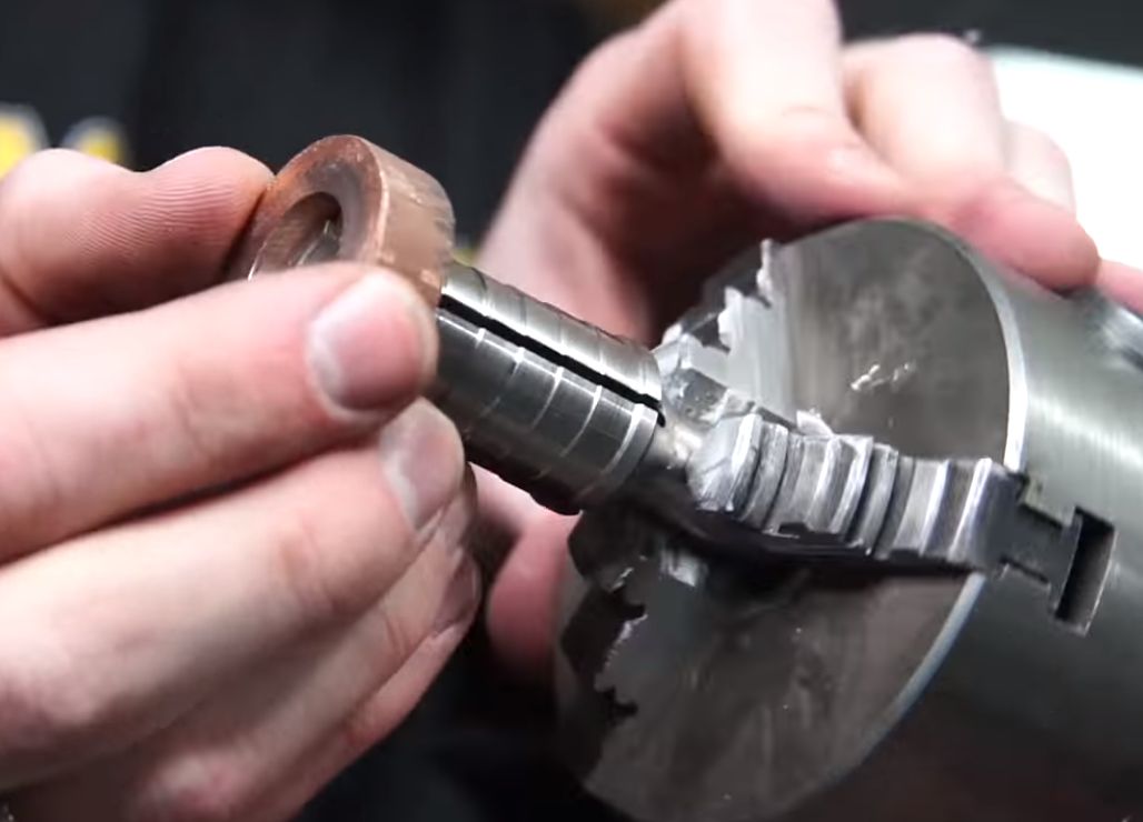 Předhrubuješ si polotovar s přídavkem na tom průměru. Uvnitř díra se závitem. Stočíš do kuželu hlavu imbus šroubu. Pak to nařízneš // klidně ručně nebo pásovka //. Upneš to zpátky do sklíčidla a skalibruješ si ten průměr. Tím šroubem to pak rozepneš.
