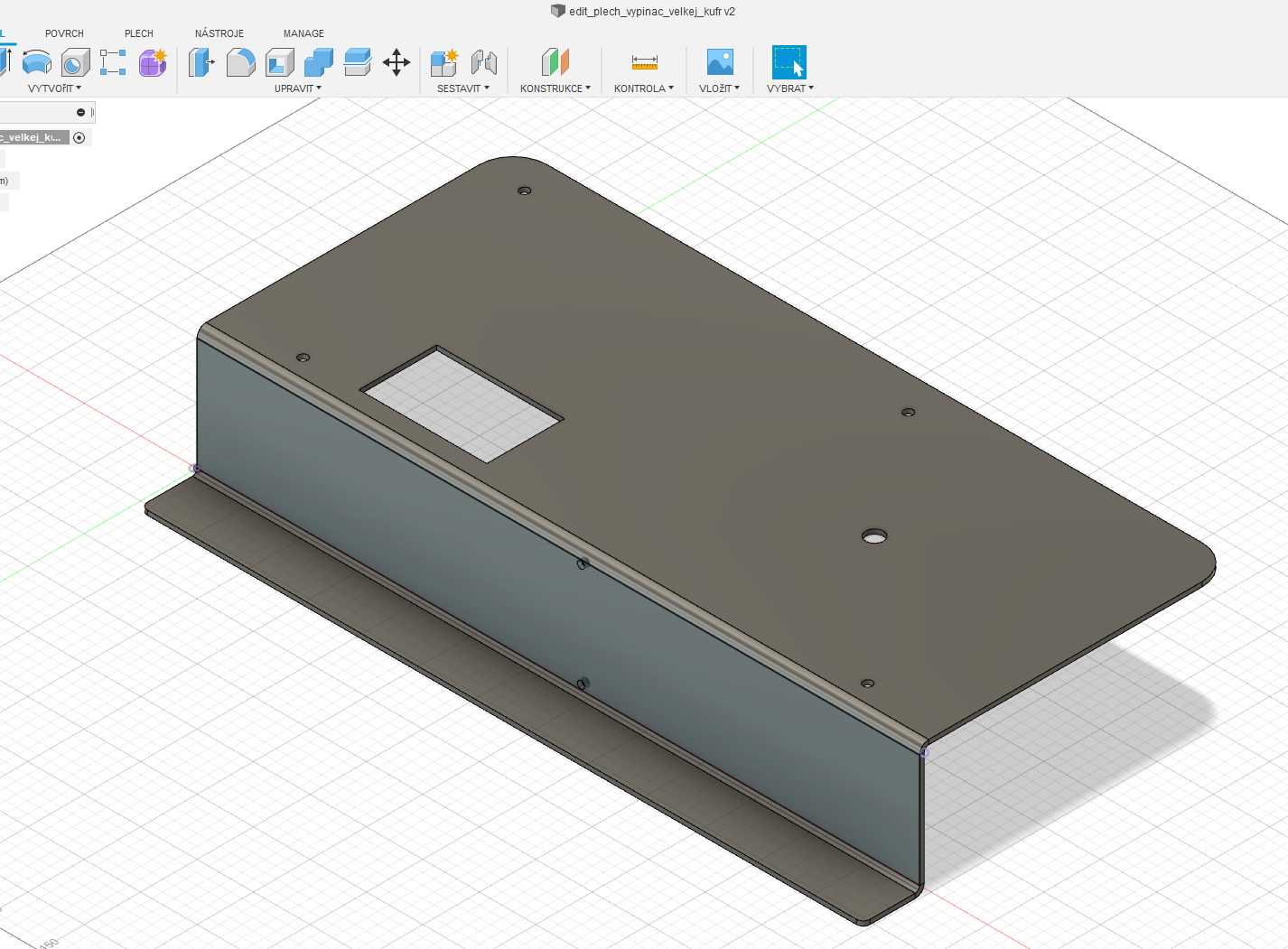 poptavam 15ks dilu z plechu AL 2mm, rozvinute cca 215x300m, treba z AW-5754, pripadne mozne material dohodnout. mam pouze STEP model, ktery vychazi z historickeho nacrtku. pro dalsi pripadnou spolupraci bych rad u pouze STEPu zustal. rozmer ohybu neni kriticky. nechal jsem default co nabidl fusion360. pripadne cim mensi radius tim lepe.