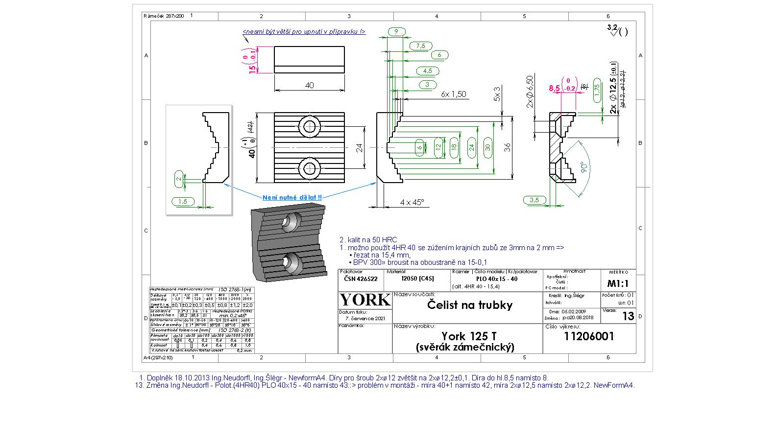 Potřebuji vyrobit čelist viz výkresy a model v příloze. Rozhodující rozměr je jen