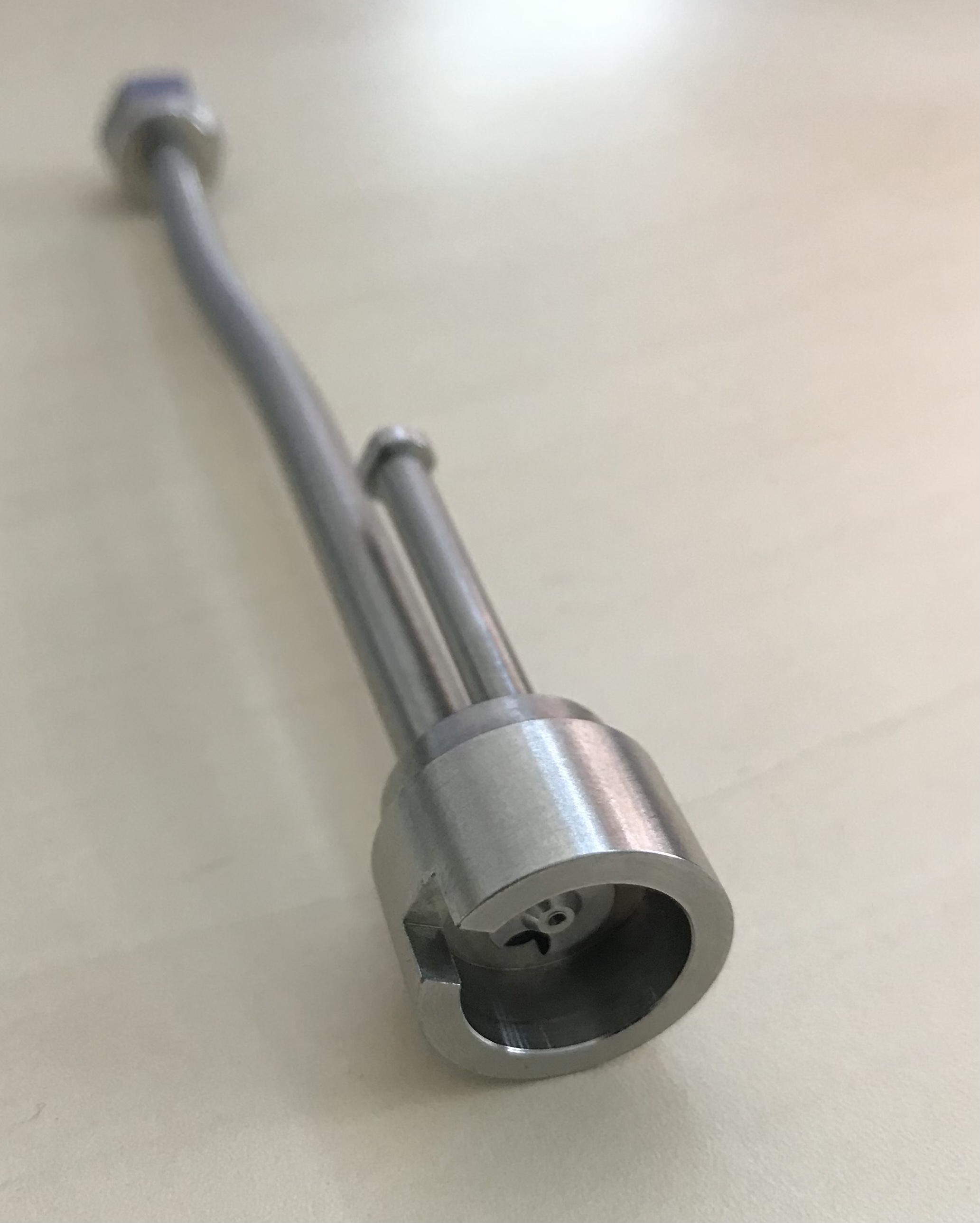 potřeboval bych upravit dva nerezové díly. Jde mi o odfrézování kruhové obruby (průměr 18 mm) o 4 mm (viz foto - po konec okna výřezu). K dílu jsou připájené nerezové trubičky, na které je třeba dát pozor (délka 15 cm) a tak není možné použít soustruh.