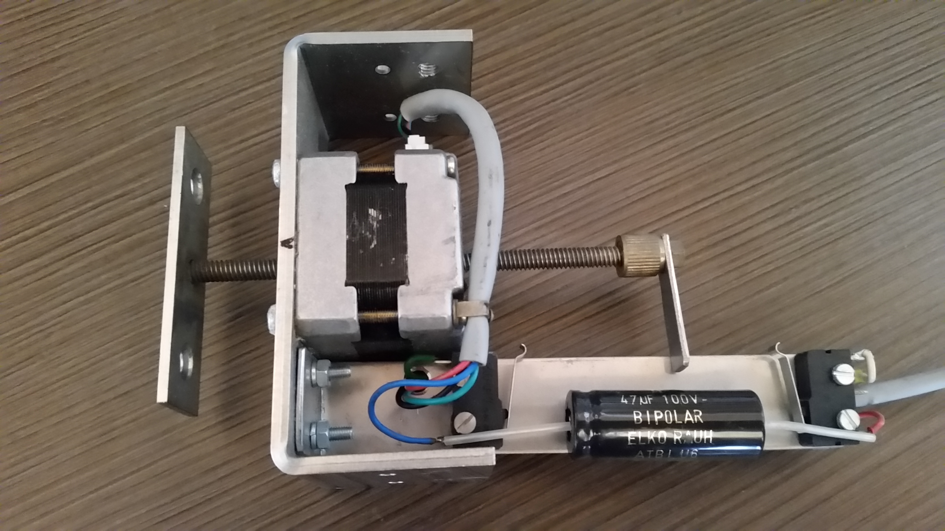 Aktualne v zapojeni pro provoz bez driveru - 2x limit switch a priprava pro AC napajeni - po privedeni AC napeti motor bezi, kombinaci vodicu se voli chod vpred-vzad.