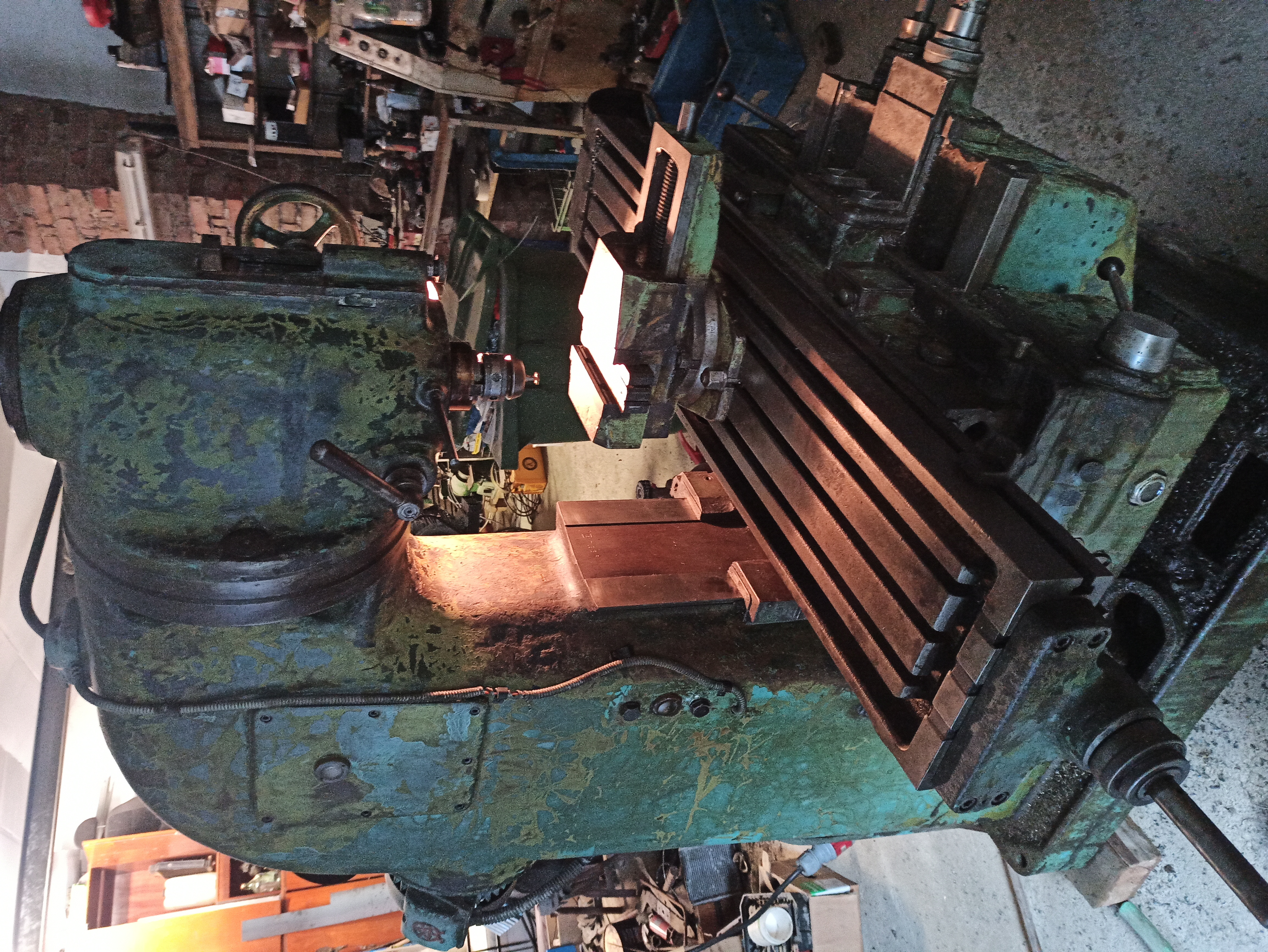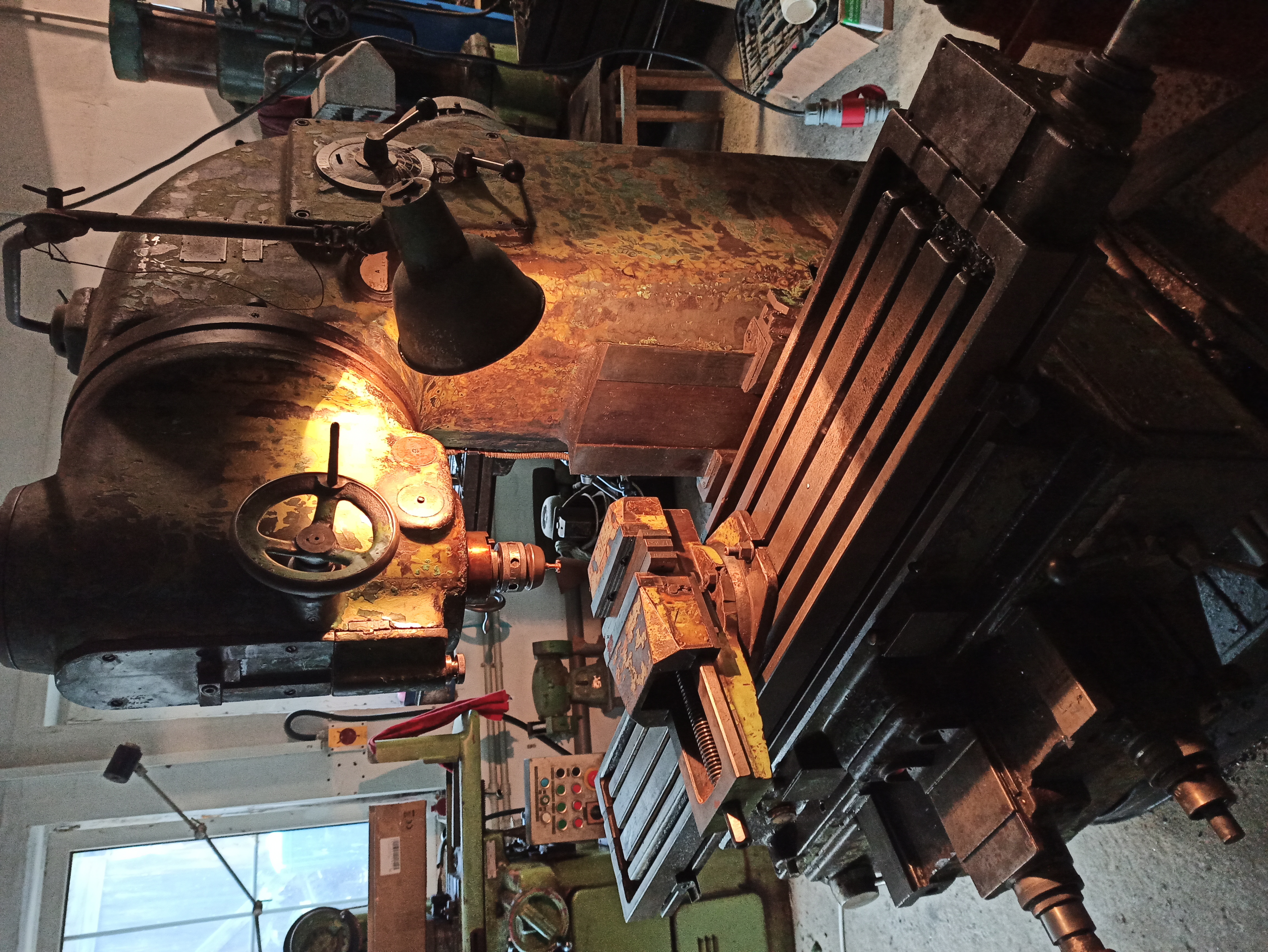 Frézka není žádná miss krásy. Funkčně je na tom docela obstojně na svůj ročník, převodovka vřetene vcelku tichá žádný kvalt nijak nehučí ani neklepe, posuvy fungují všechny jen na z ose občas přeskočí kolečko, je třeba vyladit páku přepínání posuvů ( když se páka podrží vlevo posuv funguje bez problémů )