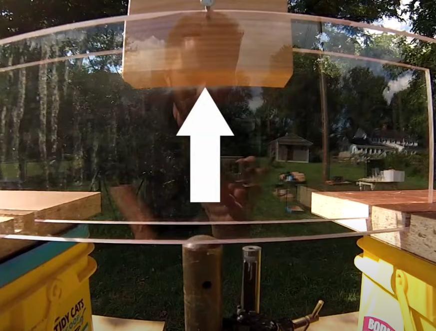 co se ale stane, když zacílíme mimo střed prkénka (- ty dva hřebíky mu dovolují rotaci)