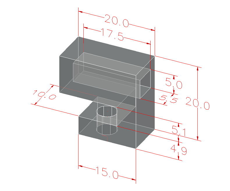 Přesnější nákres (případně model) bych poslal, toto je pro představu. Je to díl tvaru J. Ve středu horního hranolu 10x10x20 je otvor 5.5x5x17.5. V rozích otvoru může být drobný radius. Ve středu dolní podstavy je pak závit M5. Všechny vnější hrany pak nepatrně srazit - kvůli pořezání. Nějaká desetina odchylky nevadí.