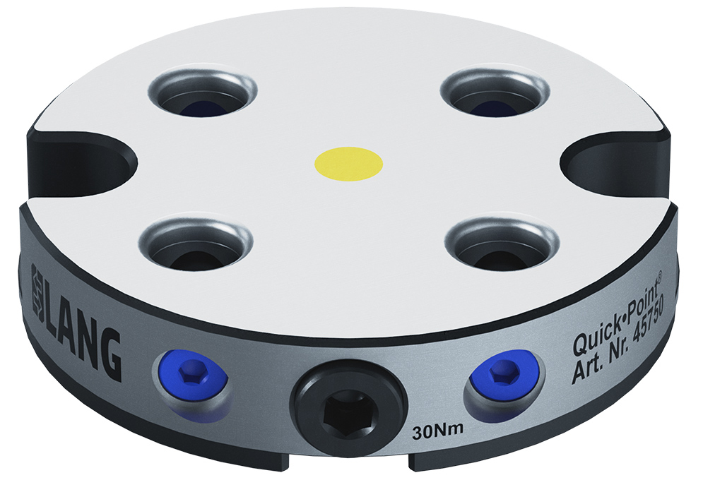 Napadlo mě upínací řešení Lang quick point, kde do děr tělesa jdou takové trny a pootočením klíčem se vše zaaretuje. Tyto trny bych si přidělal na svoje příruby a tak bych mohl relativně levně vyrobit velké množství nástrojů. Bohužel jejich nejmenší deska má průměr 116 mm, což je dost.