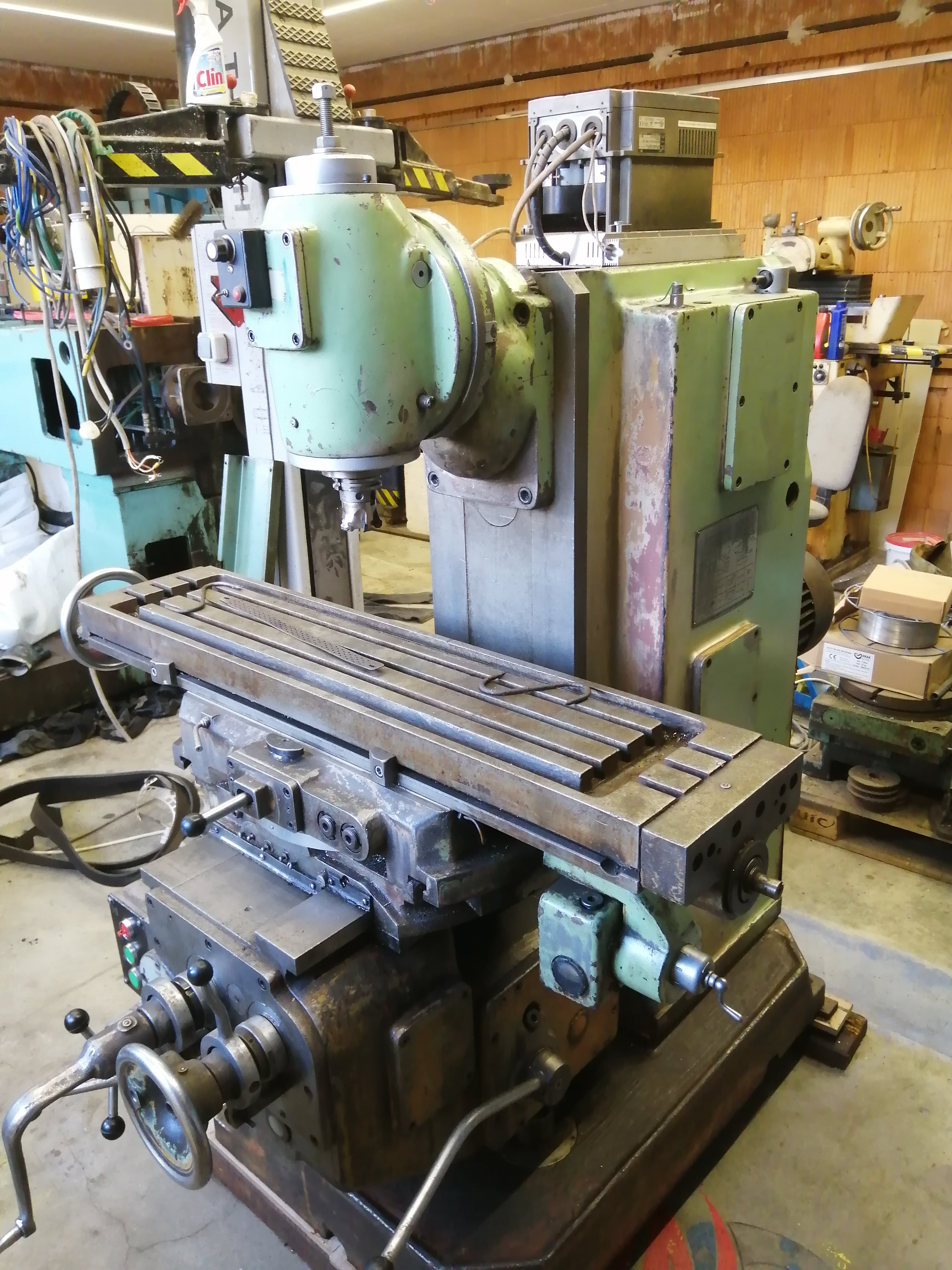Mám ji od firmy, co servisují obráběcí stroje tady ve Zlíně.Mám ji přes 10 let. Není to žádná kráska, ale sloužila a ještě slouží dobře. Mám na ní frekvenční měnič 5,5kW, tak frézuji jen na nejvyšší zařazený stupeň. Řazení otáček jde bez problémů.