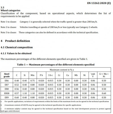 Soudoba EN 13262 pro kola definuje nekolik zakladnich jakosti chemicky i dle pozadavku na mechanicke charakteristiky.