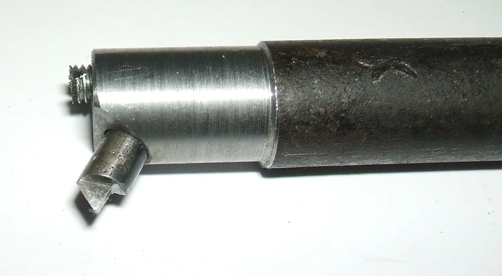 Brúsiť to z jedného kusa HSS by ti zabralo celý deň, lepšie je použiť kus guľatiny a vyvŕtať priečnu dieru na okrúhle HSS, napríklad zo zlomenej frézy. Namiesto guľatiny sa tiež dá použiť starý letovaný nôž do diery. A na vybrúsenie ti stačí obyčajná "fishtail" mierka s uhlom 60°, podľa nej to potom tiež ustavíš v sústruhu do roviny.