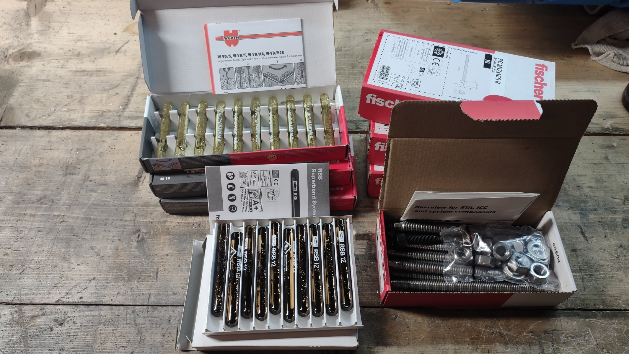 Zbylo mi tu 40ks chemickych kotev. Srouby jsou M12x160mm nerez. Srouby jsou Fischer, chemie 1x Fischer, 3x Wurth. Cena za set chemie+sroub (10ks) 800kc coz je zhruba ctvrtinova cena oproti nakupu v DEK stavebninach. Pri odberu vseho najednou posta na me.