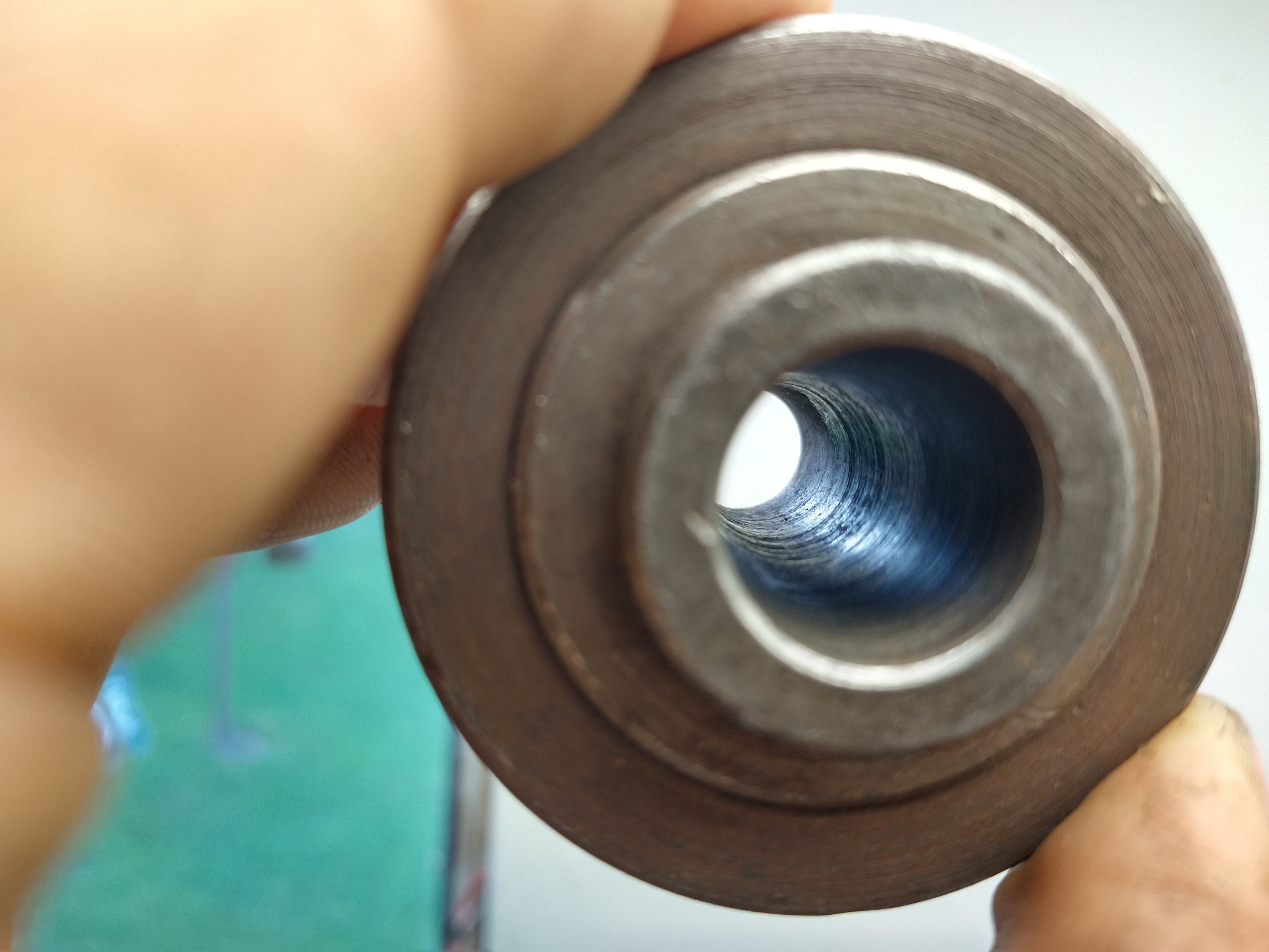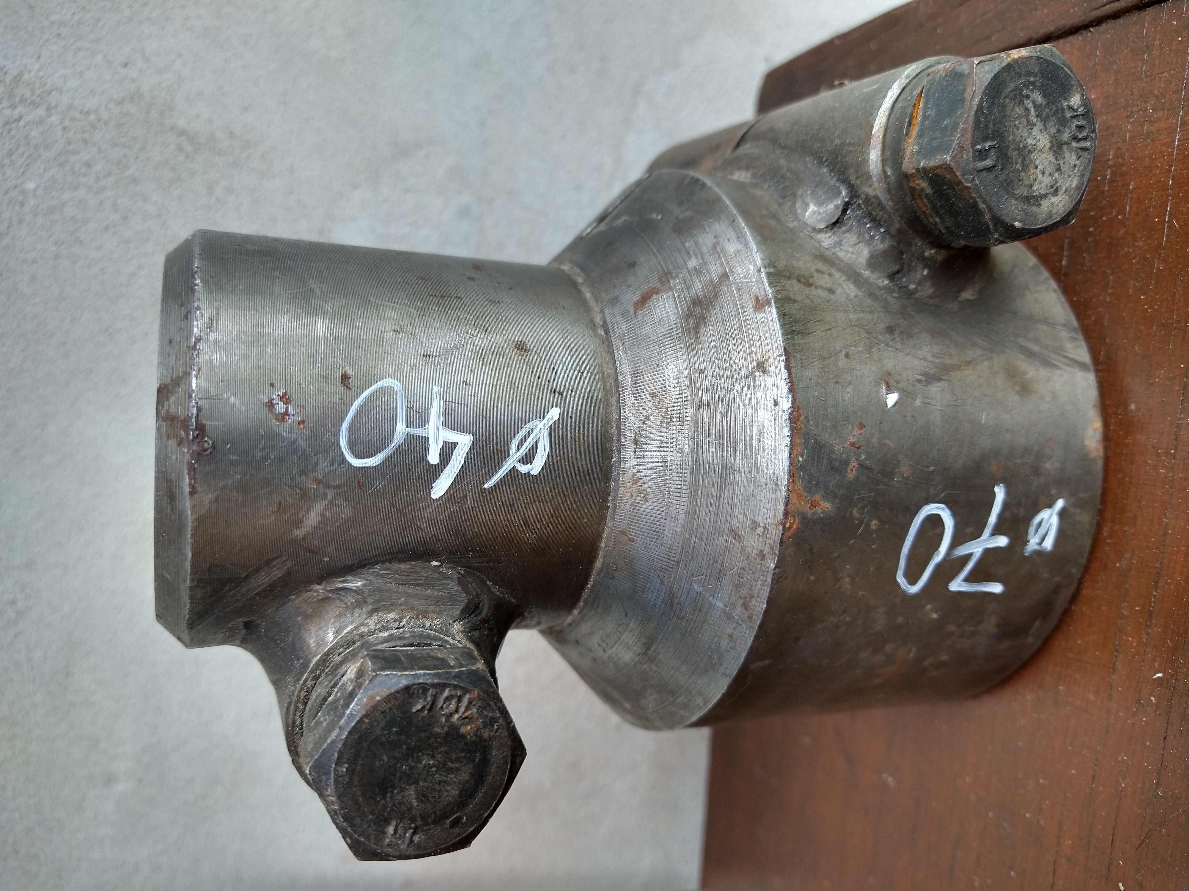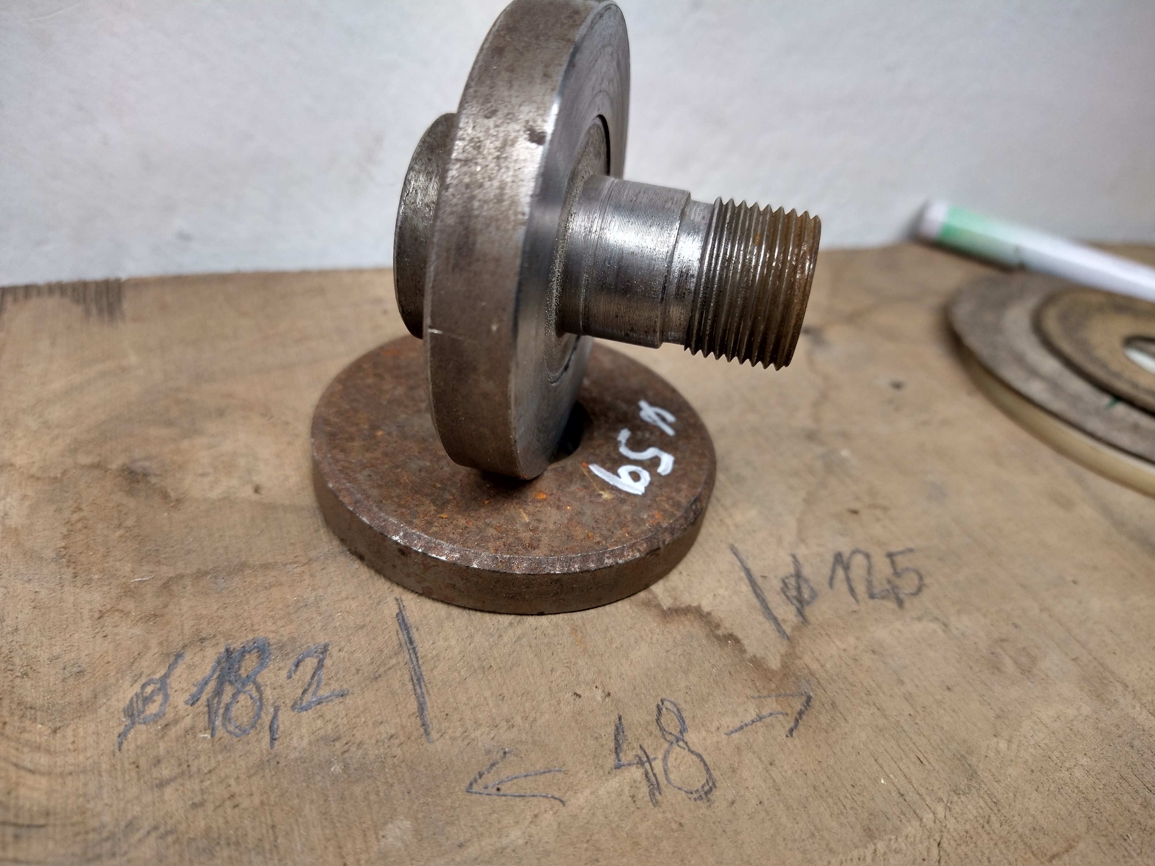 Tu přírubu na kotouče je třeba brát spíše jako polotovar. Ten vnitřní kužel není pěkný a chtěl by opravit. Posuvkou jsem byl schopný změřit maximálně to, že kužel na 48mm jde z rozměru 18,2mm na 12,5mm. Průměr na kotouč je 20mm.