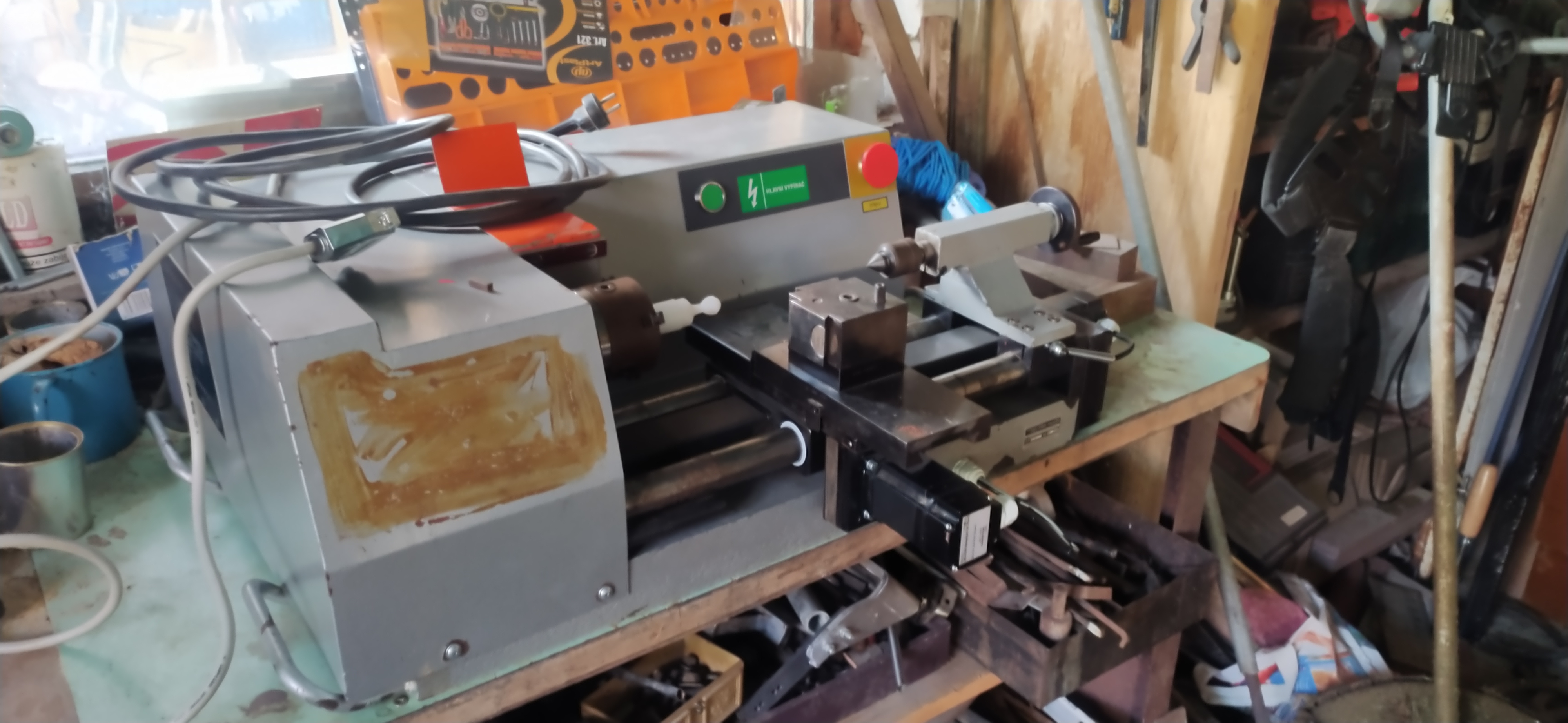 Na tom soustruhu bude cenná ta mechanika, případně motory a možná i drivery (ale to na neostrých fotkách není vidět).