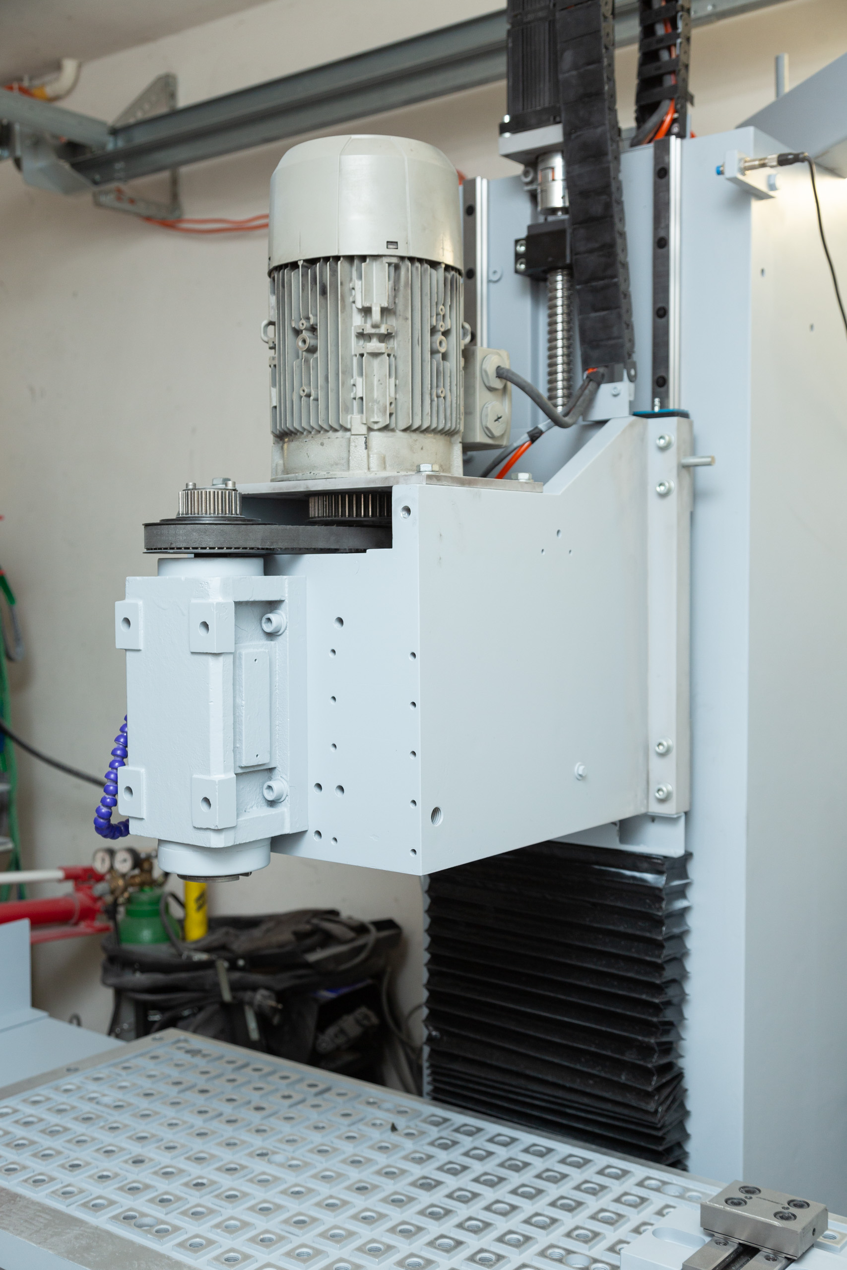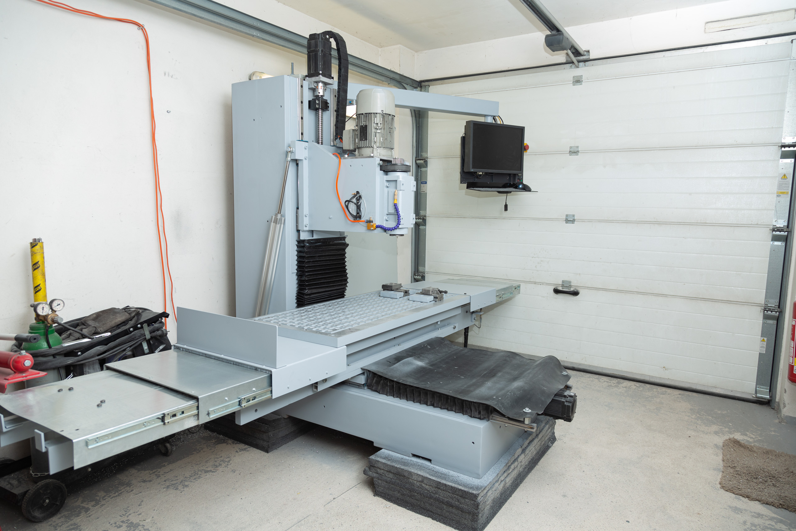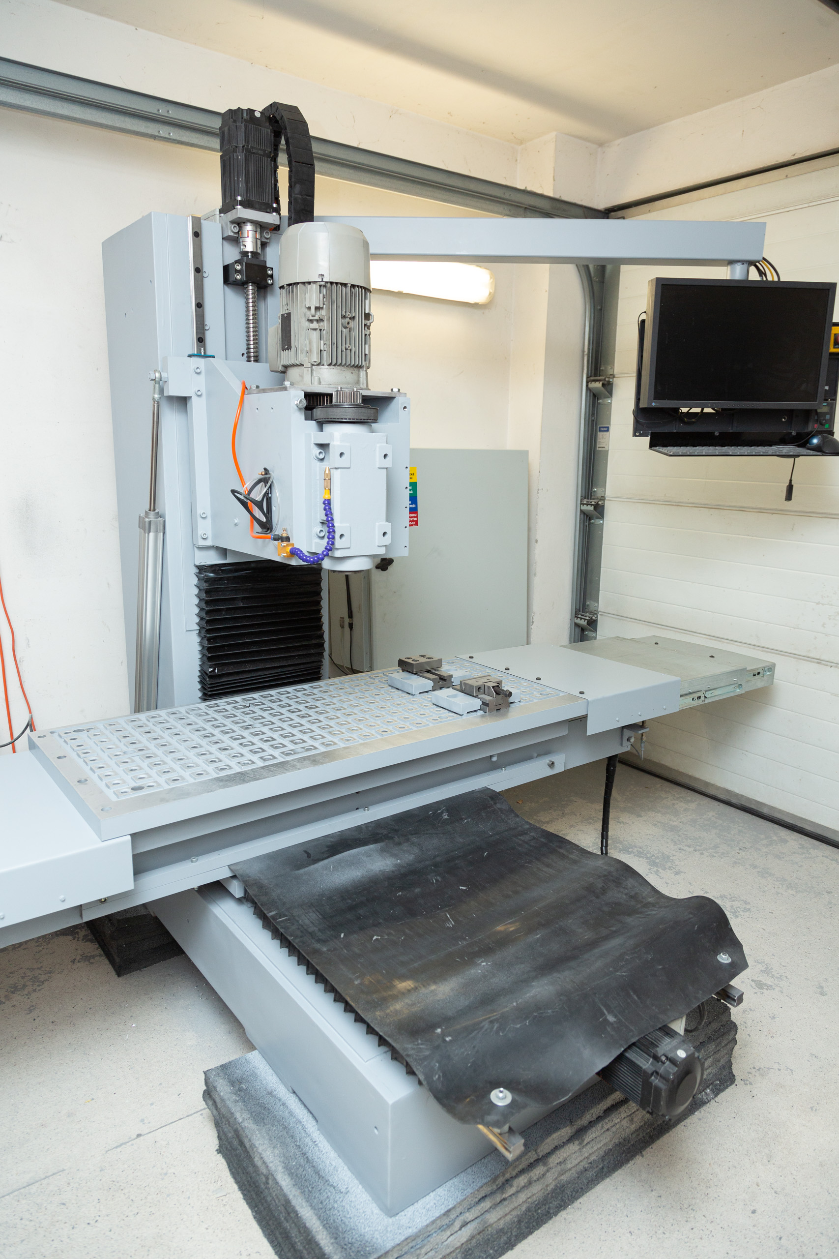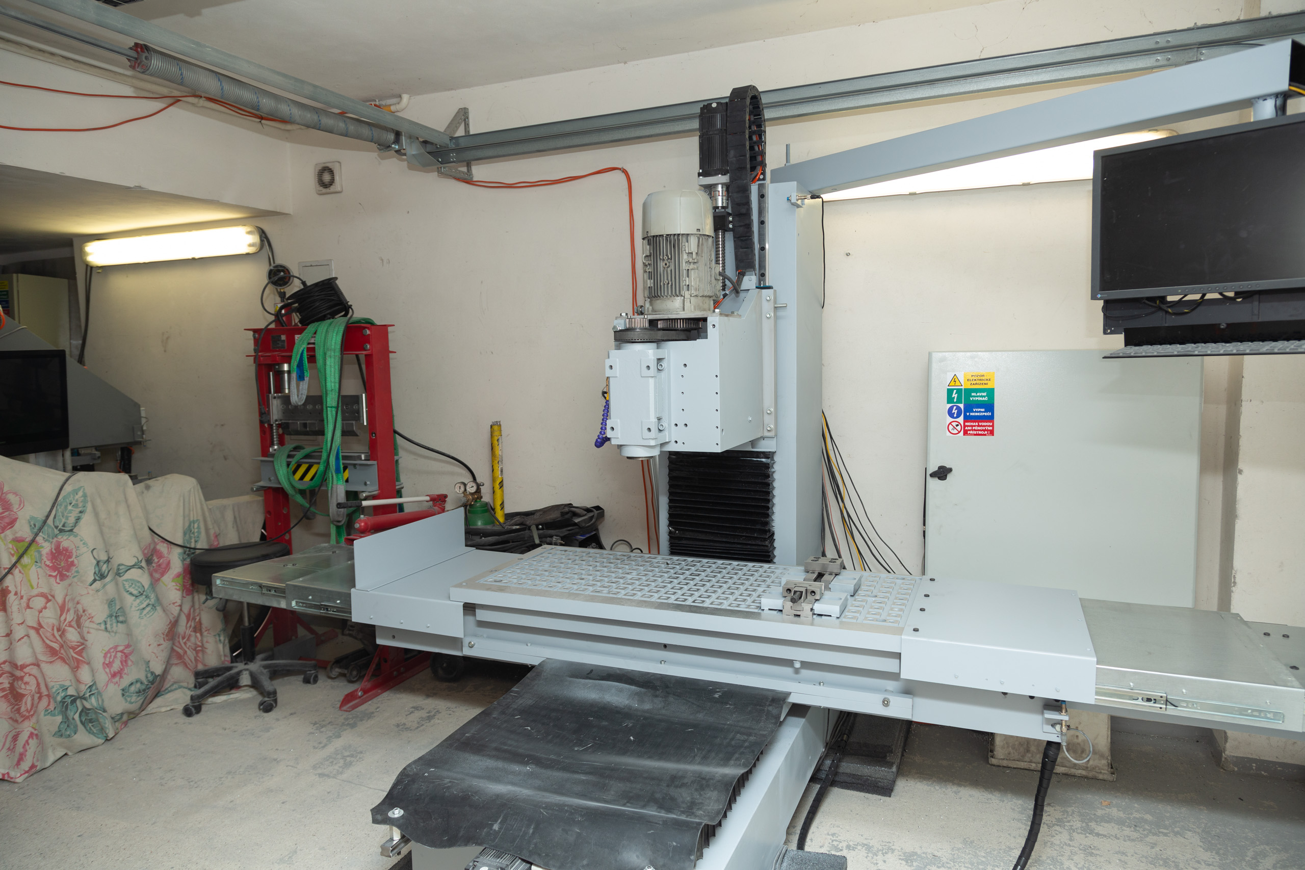 Jen orientačně. Vejde se do dvoumetrové garáže. Montovaná konstrukce s ocelu S355 a lehkého betonu, vřeteník z Alu2017 a polymerbetonu. Vedení TBI 30, šrouby 3210 C5, pohony EasyServo 20Nm, řízení Mach4 přes ESS na Win10. Posuvy max 12m/min. Vřeteno mechanické s ISO30, ale je to macek který se prodává jako ISO40. Asi spletli v produkci:)