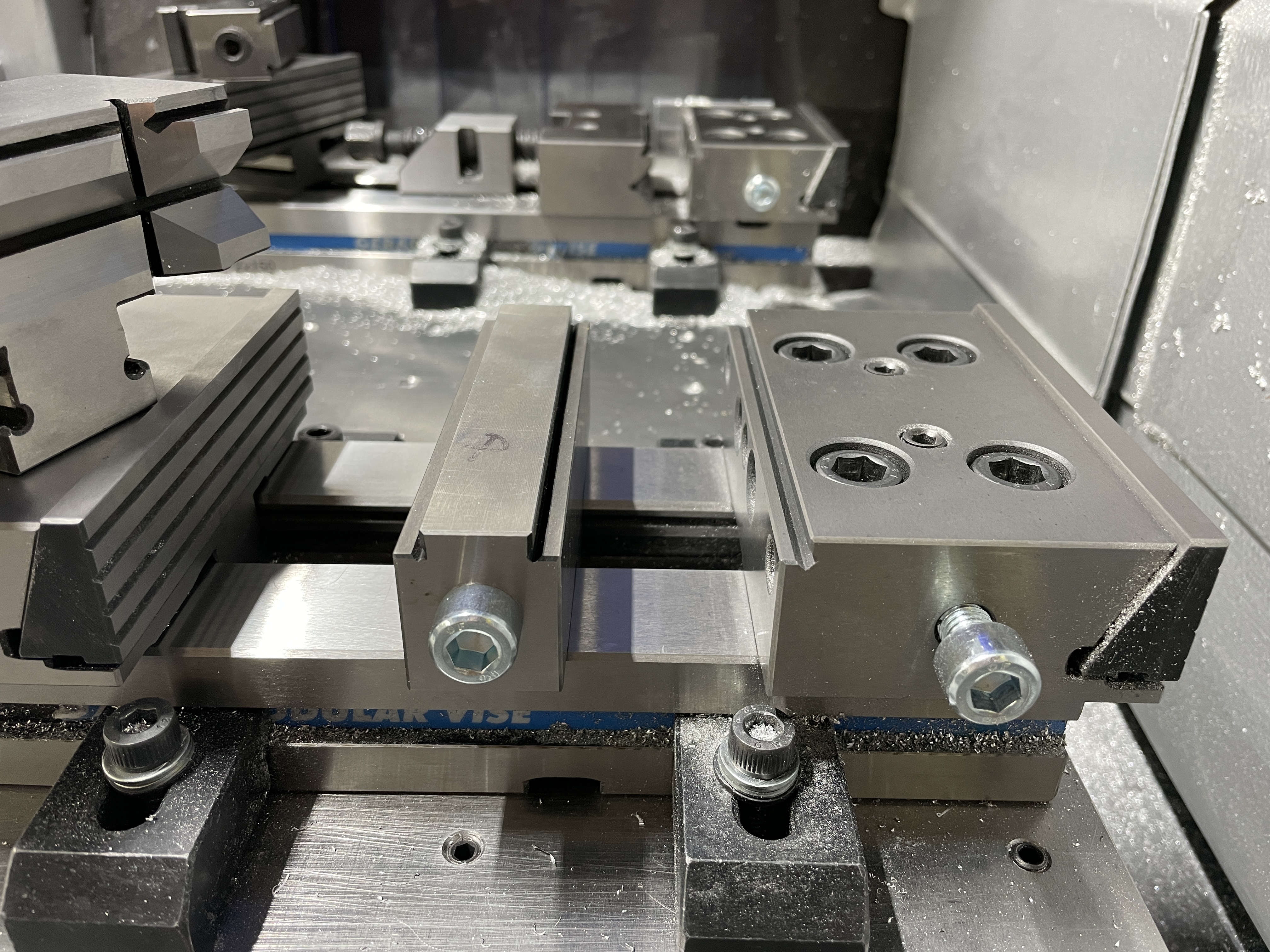 Kromě základních čelistí je ke každému svěráku jsou upínky, pohyblivá středová část a prizmatická čelist. Umožňuje to svěráky používat duálně na dva obrobky.