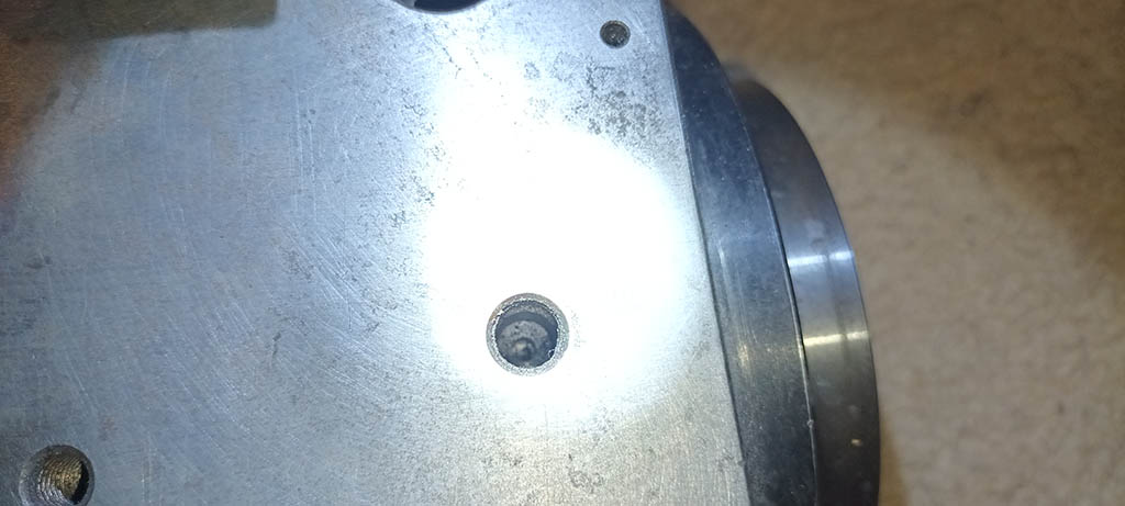 nahoře má čtyři přípojná místa. Dvě větší díry mají dole tak trojky dírky, to by mohlo být mazání, jsou poblíž ložisek. Dvě menší nemají závit až dolů, jsou hlubší nevidím tam, vypadají neprůchozí, ale nevím. Celý vřeteník byl poháněný hydraulikou a jako komplet je to nějaká Kitagawa. Má mít 6000 otáček.