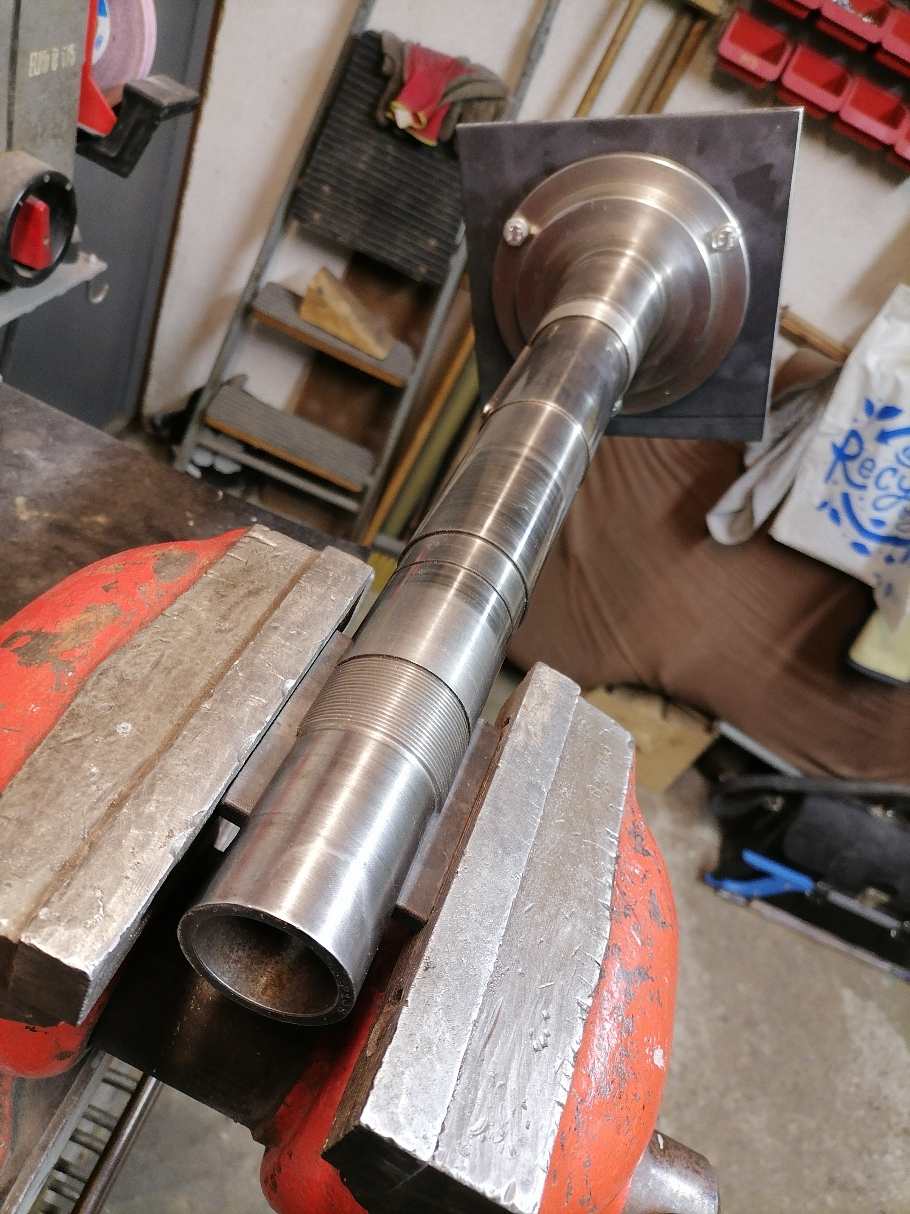 Proč je tam přišroubovaný ten čtverec? To bych také vyhodil, může to přírubu (a závit v ní) deformovat..