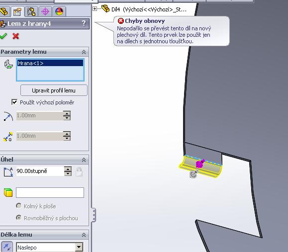 ono zřejmě cokoliv dokreslím není součástí plechového dílu, na to musím jít postupem "lem, vybočení" atd a to na křivé ploše nedovolí. :-(
