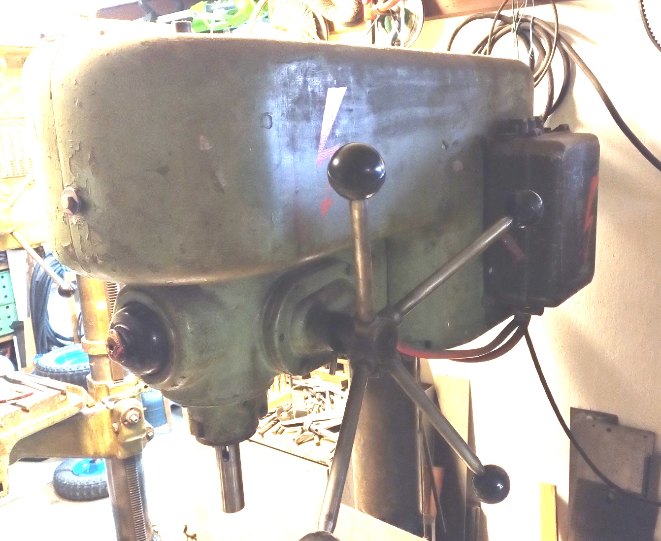 mám bytelnou sloupovou vrtačku a nemá žádný štítek. Podle provedení se to podobá na nějaký výrobek Jihokov, ale nikde jsem to nedohledal. Celkové foto zatím nemám, je zastavěná všeličím v rámci momentálních přesunů v dílně. Vrtačka má docela nezvyklé řešení převodu posuvu pinoly, když se hřídel s pákou povytáhne, tak se změní převod mezi ruční pákou a pinolou a pinola klesá pomaleji a s větší silou. Potkal jste se tím už někdo? Než ji pošlu do světa, tak bych docela rád věděl, co to mám za typ:-)