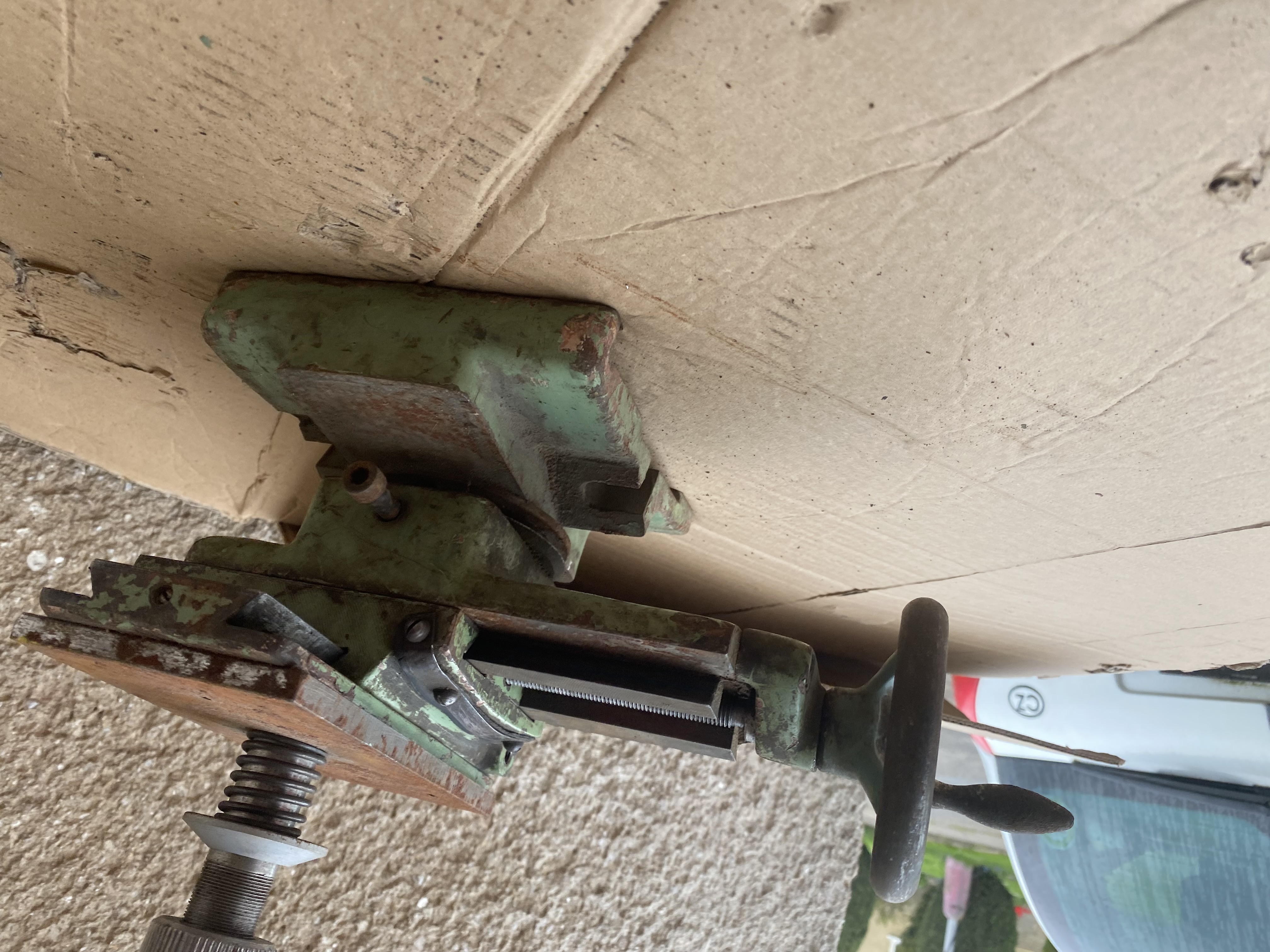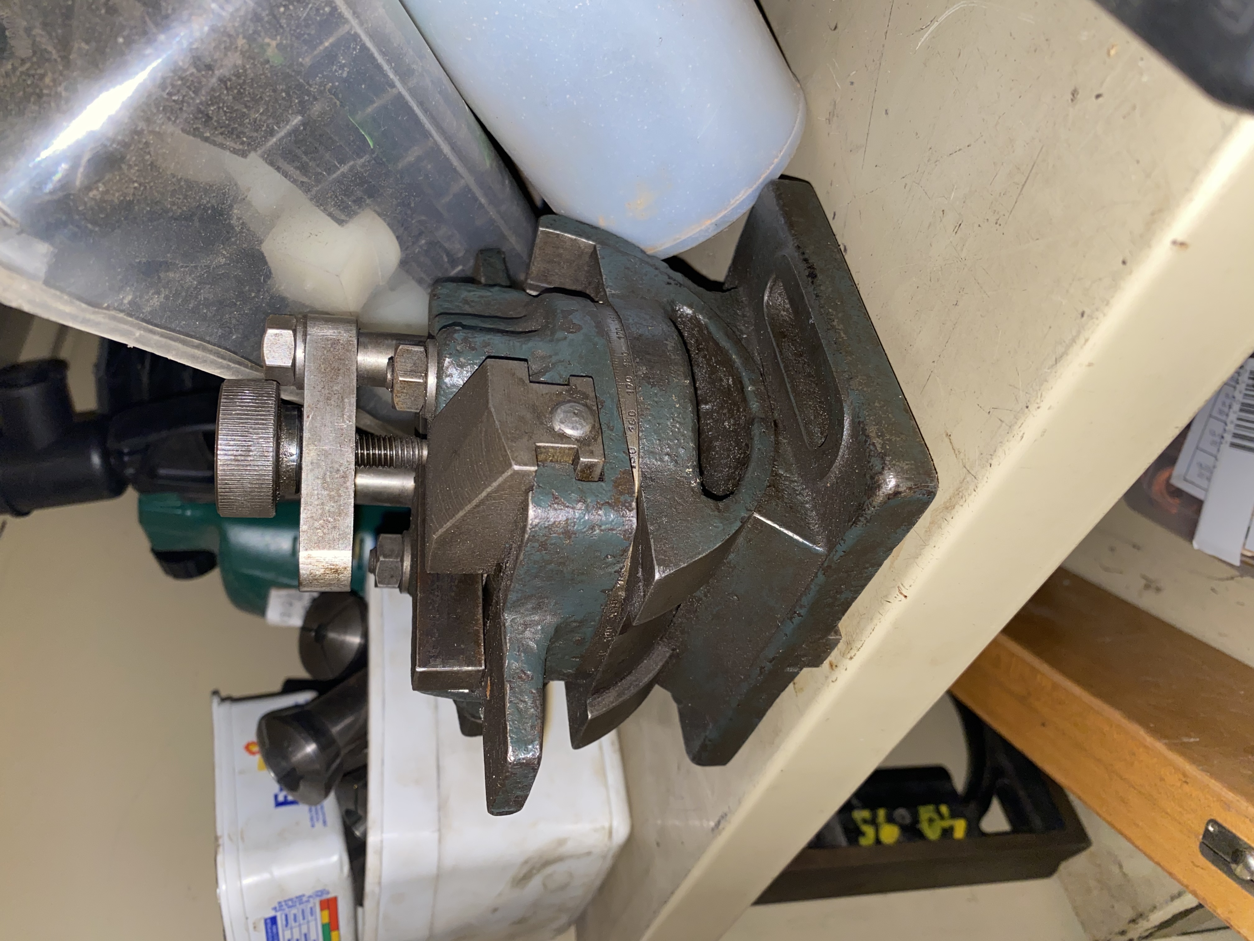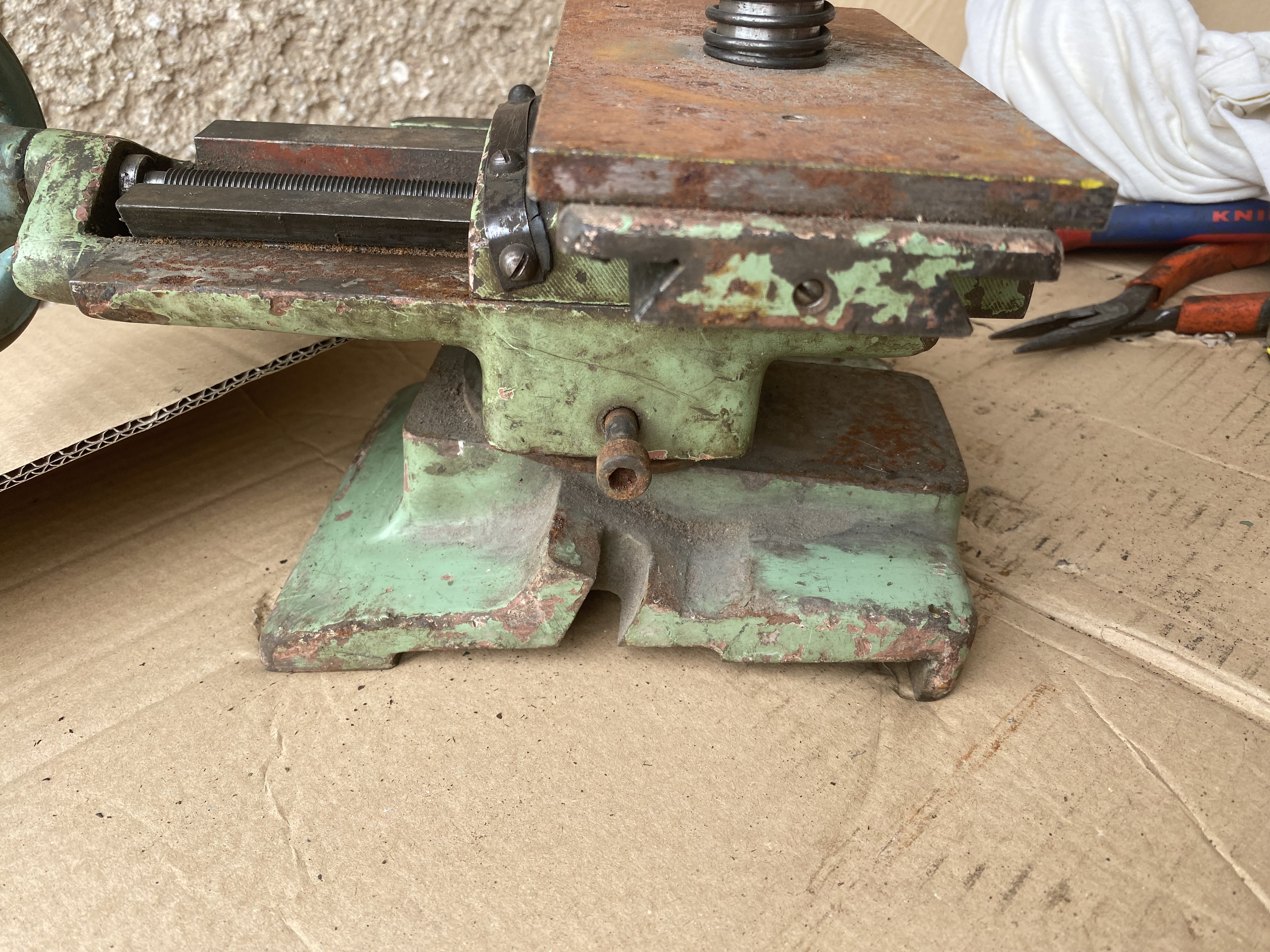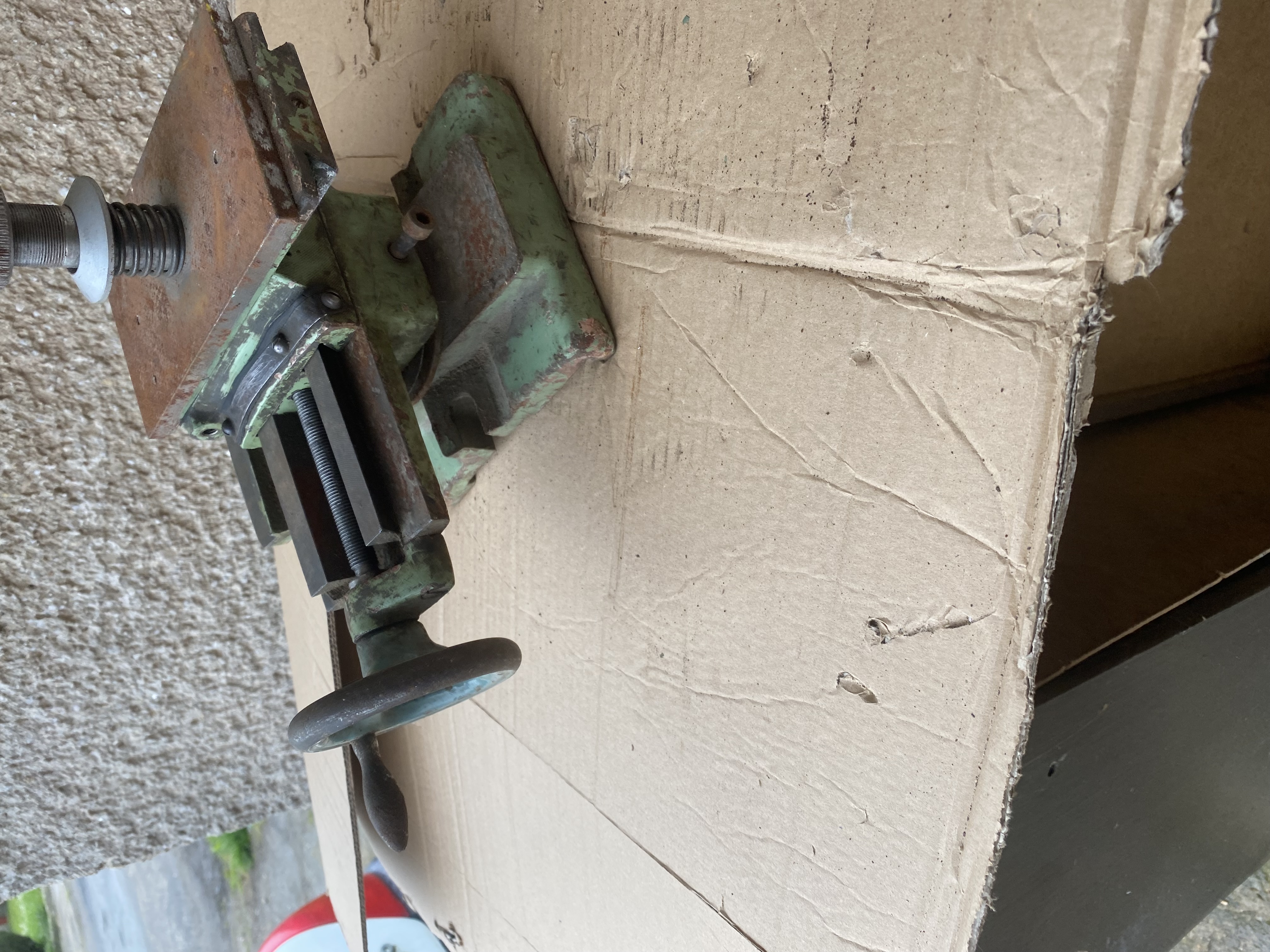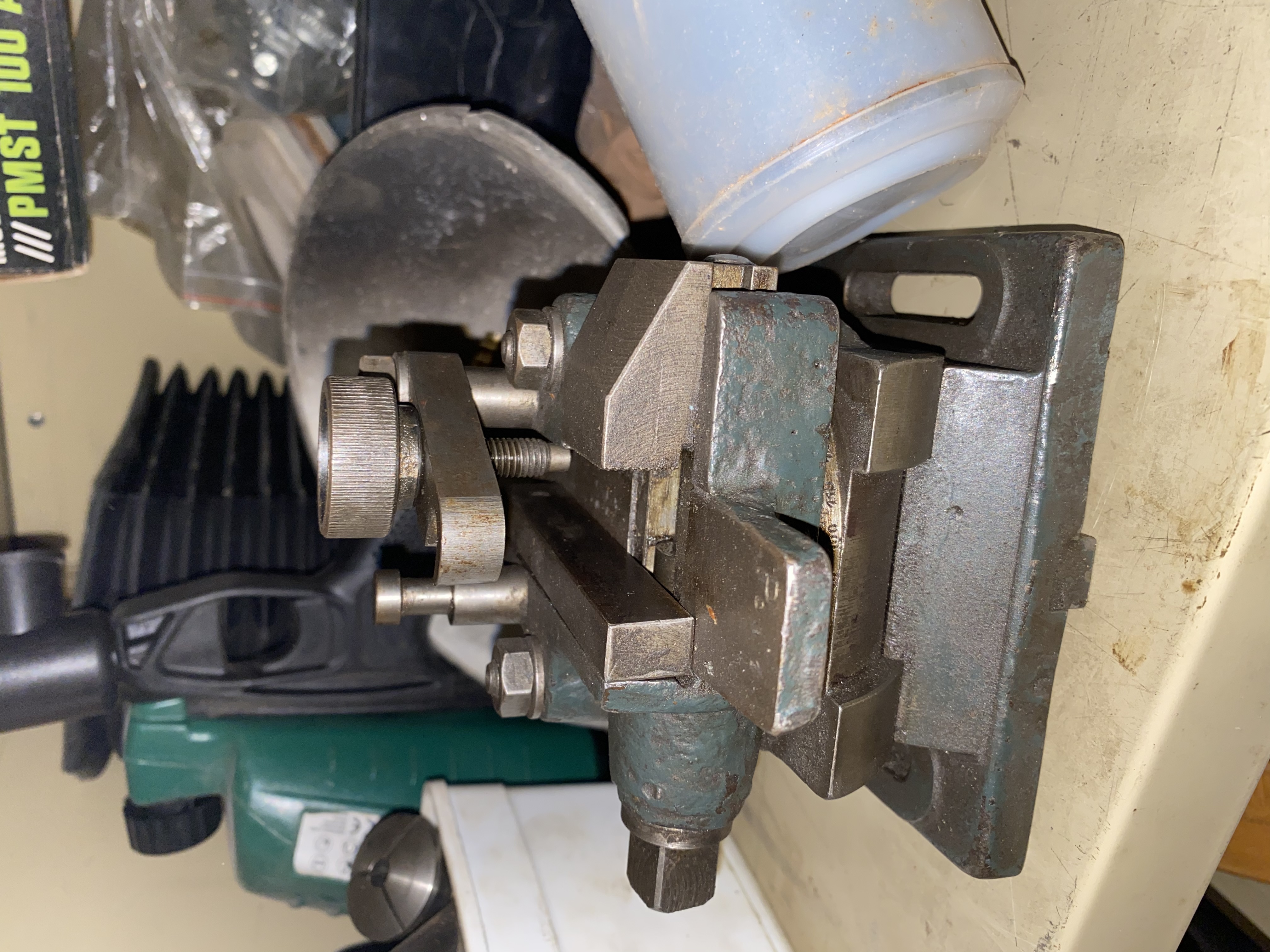 Bastl to není. Ten vrch je ofrézovanej. Origo to bude úhlový orovnávač z hrotovky - podle té spodní desky - uchycení šikmo. Navíc je tam ten pásek plechu na uchycení kožené prachovky. Kvůli bordelu z orovnávání. Podobně to má bezhrotka (křížově). Ty co mám, tak mají mikrometrický orovnávač s tělem D 50 mm. Celej má 50-60 kg...
