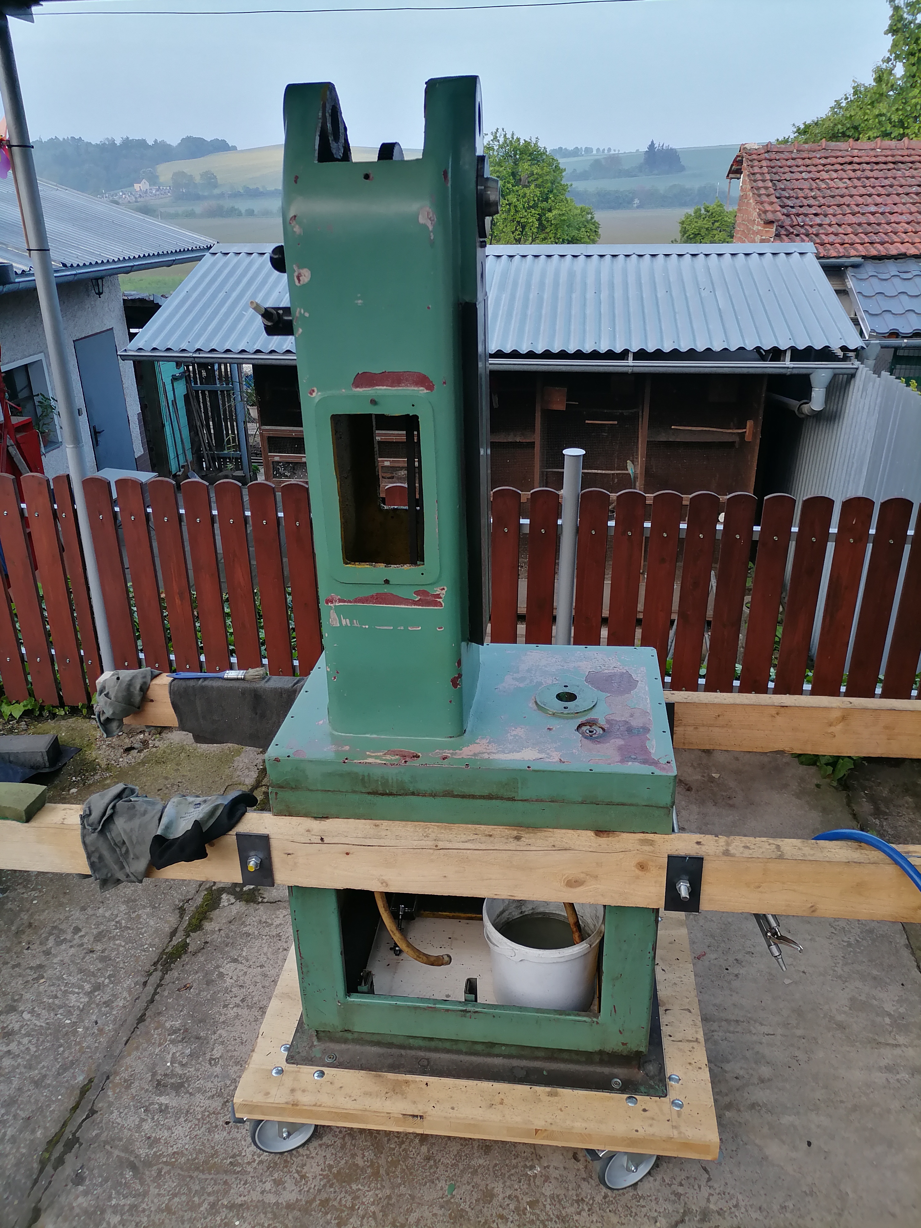 Odzadu: pokud vytmelí jen opadaná místa,je to na chvíli.Starý kyt je nasáklý olejem a nic se s ním nespojí. Opravdu zbývá jen omlátit( nebo obrousit ) všechno staré až na litinu ,naplácat novým kytem a obrousit. V postupce nějak nevidím smysl: na co plnič? není to auto. Navíc si krásně protiřečíš- plnič brousit 320 -zbytečně,nechá na tom fůru časdu a ruce-a pak naplácat polomatem? Viděl jsi někdy originální tovární nátěry,co měly tyhle stroje původně?Já mám mnohem jednodušší variantu: obrousit na litinu,odmastit horkým louhem( to je nutnost,dělalo a dělá se to tak stále i v generálkách. Po usušení vykytovat velké ďoury a obrousit. Pak nastříkat -podle potřeby jednou,dvěma vrstvami stříkacího polyesterového kytu a obrousit za sucha max. 240. Konečně nabarvit -samozřejmě polyuretanem, někdy stačí jedna,ale hezčí je to na dvě vrstvy po zavadnutí první.Za čtyři dny může strojit. Plnič a jiné sračky jsou zbytečné,navíc se zvyšuje tloušťka celého nátěru,takže pak mizí mechanická odolnost celé operace..