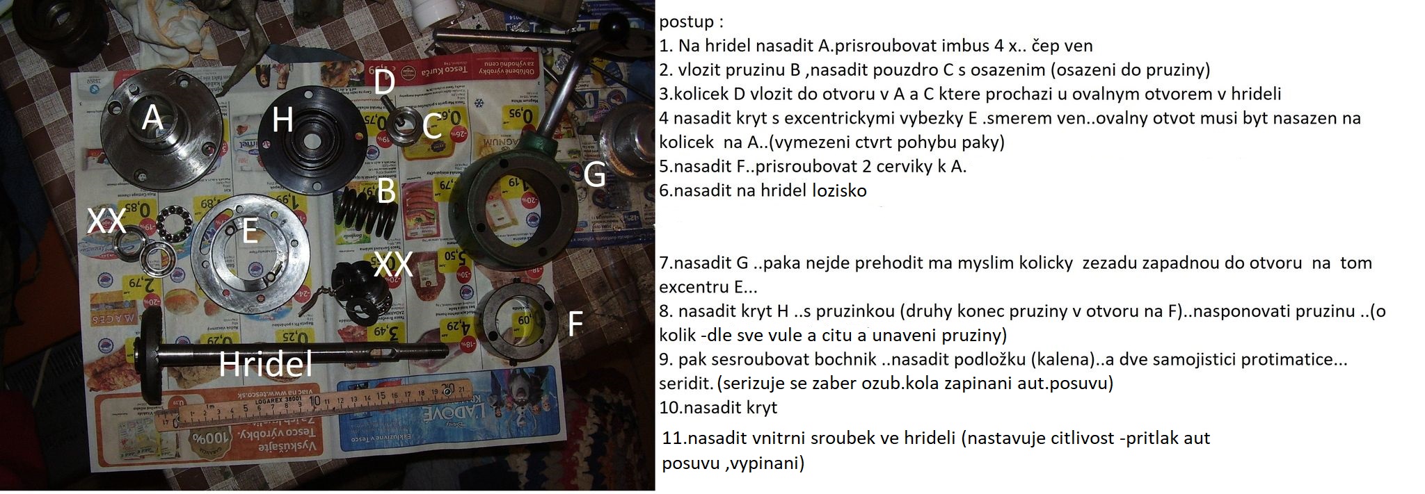 ssmak3050, děkuji - ty fotky z tohoto fóra jsem studoval mnohokrát!! Na webu není moc fotek z rozebírání S28. Zajímavé je, že ta sestava se mírně liší od té mojí, třeba pod "A" (mezi "A" a vozíkem) nemám to velké axiální ložisko. Jen nějaké kalené a broušené distanční podložky. Myslím, že se mechanismus v průběhu let změnil.