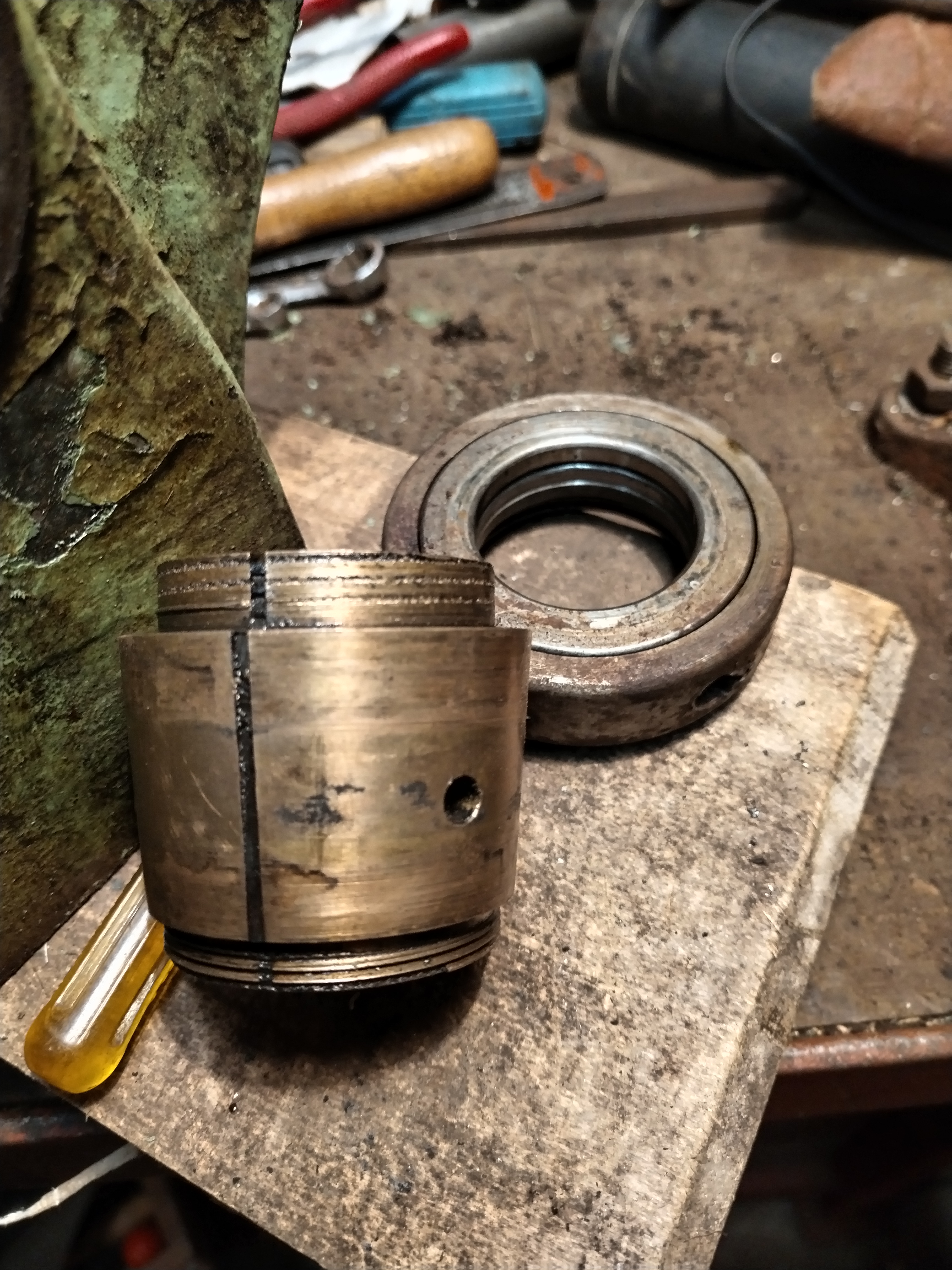 Zdravím místní odborníky a prosím o radu. Snažím se demontovat hříhel (vřeteno, vřeteník? ) abych to mohl všechno vyčistit, prověřit a provlíknout řemen. Co jsem se tady dopídil, tak by to už mělo jít vylisovat a od sklíčidla by to mělo vylézt ven. Nic na povolení už jsem tam nenašel. Nechci to zničit a prosím o názor. Dík