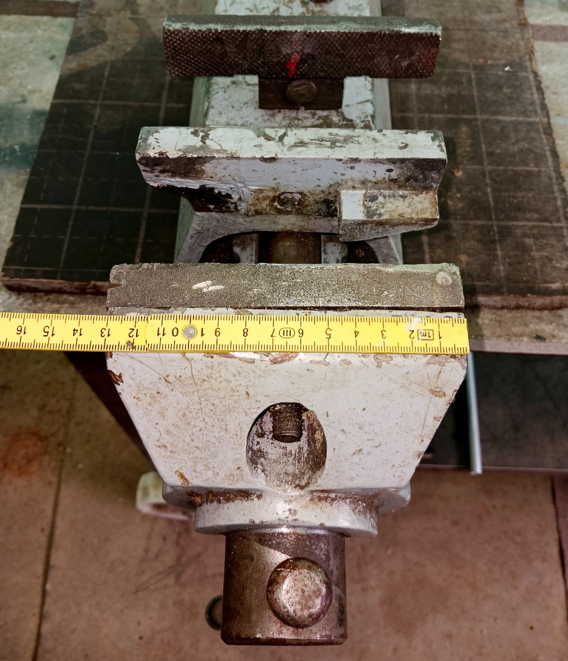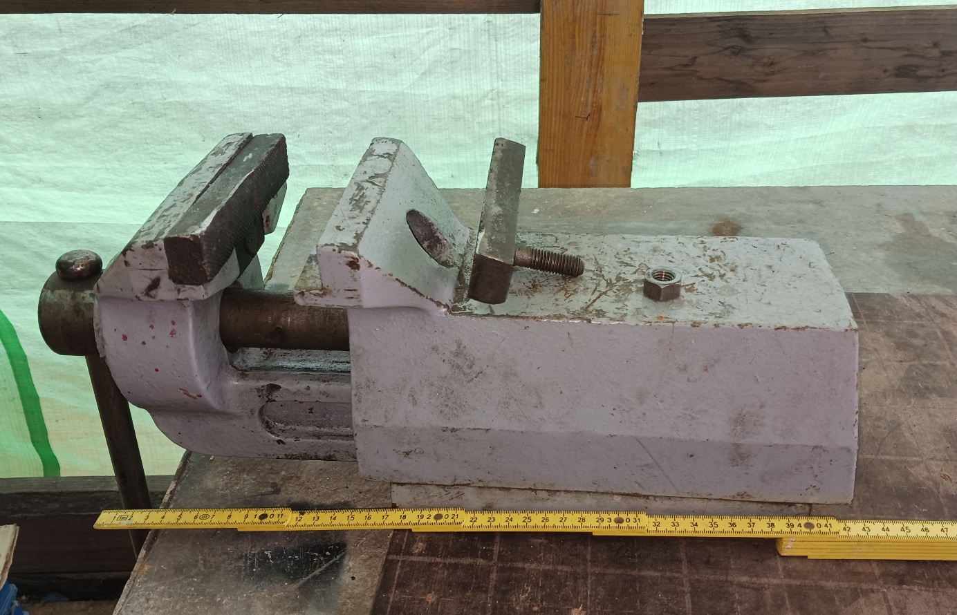 Starší velký svěrák, váha asi 30 kg, někdo se jej pokoušel vyvařit ale noc se nepovedlo. Dá se používat i bez opravy.