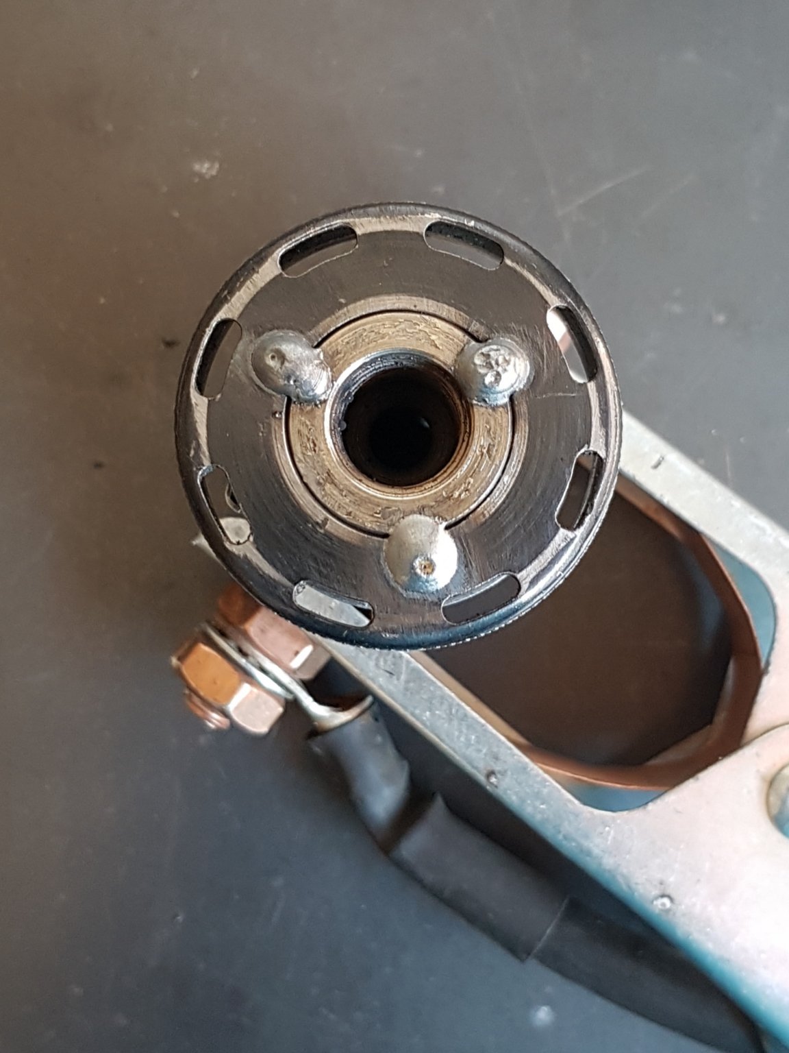 Zkusil bych to takto nějak zabodovat MIGem, myslíte, že to půjde? Akorát je to docela dost masa na ose a dost málo na kroužku (vypadá to na cca 1mm plech). Také netuším materiál osy.