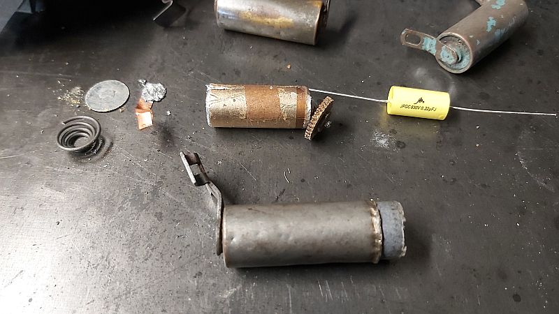 Dnes som opravoval kondenzátor zapaľovania na aute. tvarovo je to atyp, starý 60rokov. parametre už nemá, tak som našiel návod ako vymeniť jadro (zvitok) za moderný kondenzátor. vznikne tak tvarovo pôvodný, nový kondenzátor.