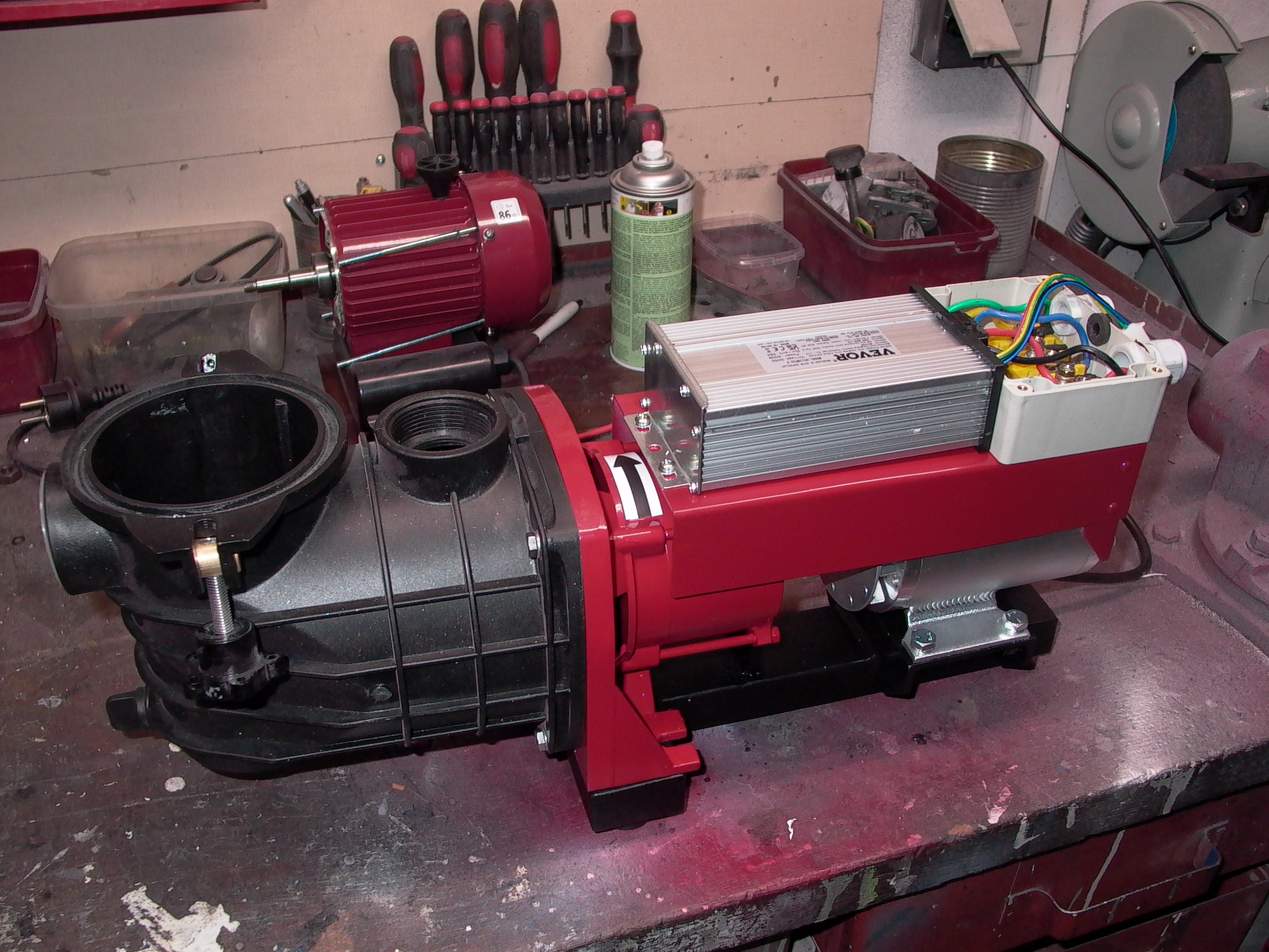 pro inspiraci, posílám fotky z přestavby bazénového čerpadla na DC napájení z domácí FVE.