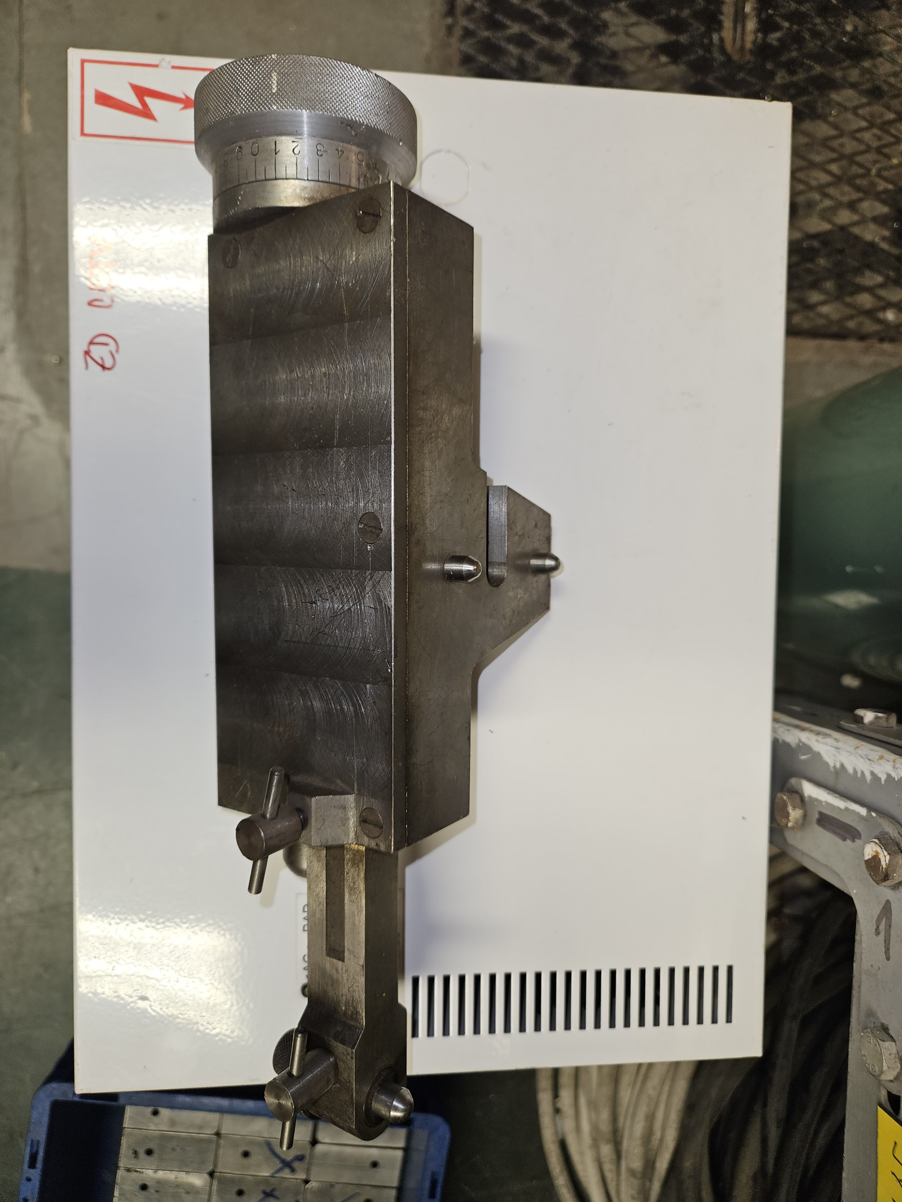 Dosti podobný mechanismus je vidět na historických fotkách ze čtyřicátých let z Los Alamos Critical Experiments Facility. Hledej dál, možná ještě najdeš takové dvě polokoule a zařízení bude kompletní.