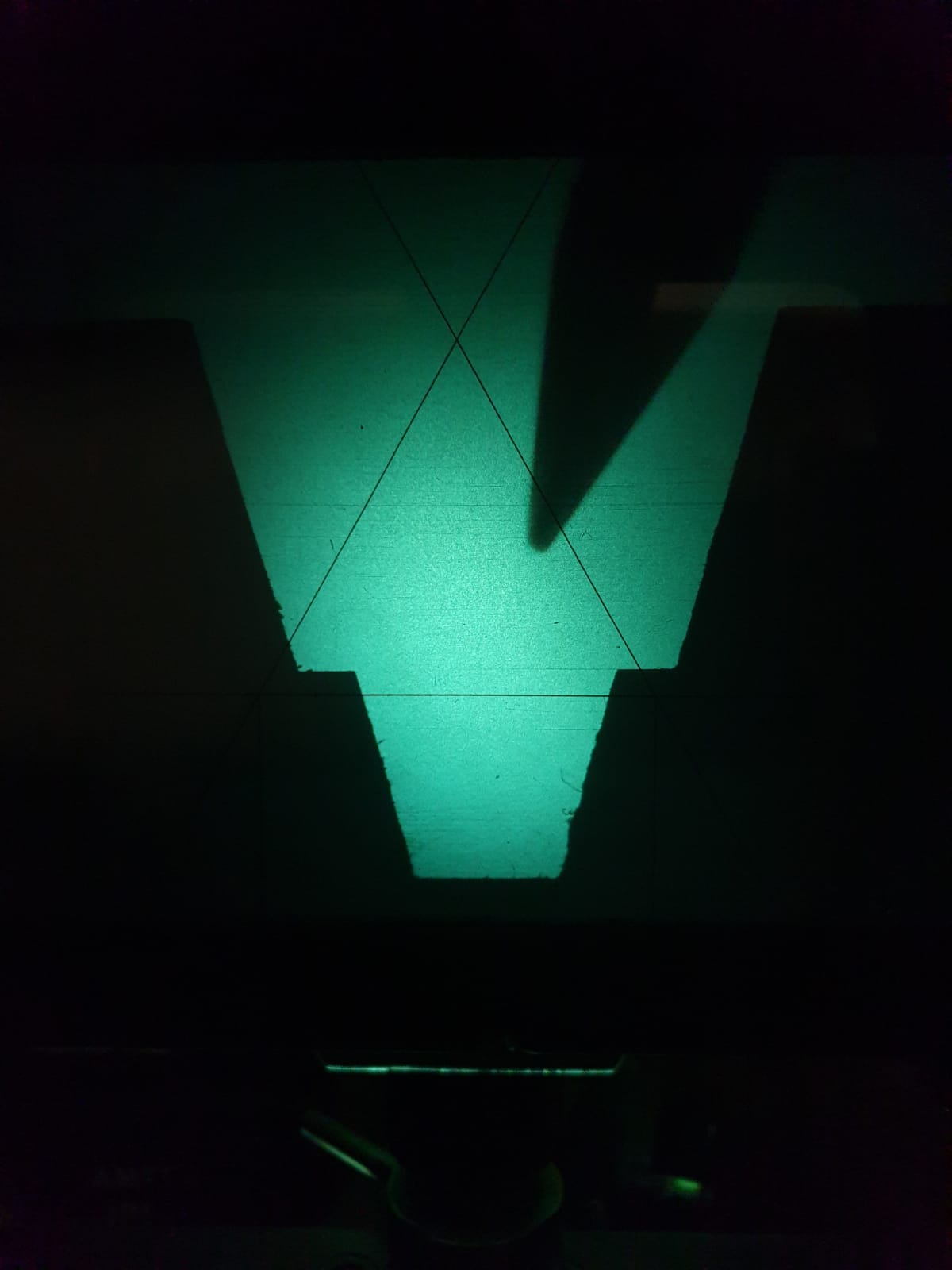 Samo, že na tom Doebelim je taky profil projektor a přesně jak píšeš, tak je tam zvětšení 20X. Měl jsem to celý kuchnutý. Zespod svítí přes zelený sklo 6V halogen přes ostří nože do optiky nahoře - ano, trpí to na bordel z toho radeka. Zvedáním, spouštěním "televize" na tom rámu nad stolem si to vyladíš - viz. ten návod. Přes čočky to jde na zrcátko, který to směřuje na zrcadlo vzadu v tý "televizi" - cca 10x15cm a to pak na stínítko - vepředu je v tom hliníkovým rámu klasický sklo a na něj z boku zasuneš dvě plexi, mezi který hodíš tvar nože 1:20 a jedeš podle něj. Docela to používám...