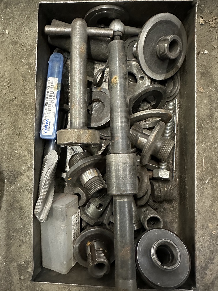 prave aj lave otacky s regulaciou, niekolko prirub na kotuce, ISO 40 kuzel v delicke, vsetky priame iso kliestiny,deliace kotuce, niekolko konikov, 2 hrotove pristroje, odpruzene hroty, 2 delicky,radiusovy pristroj, 3osy zverak, radiusovy(tvarovy) orovnavac, vreteno na vnutorne otvory