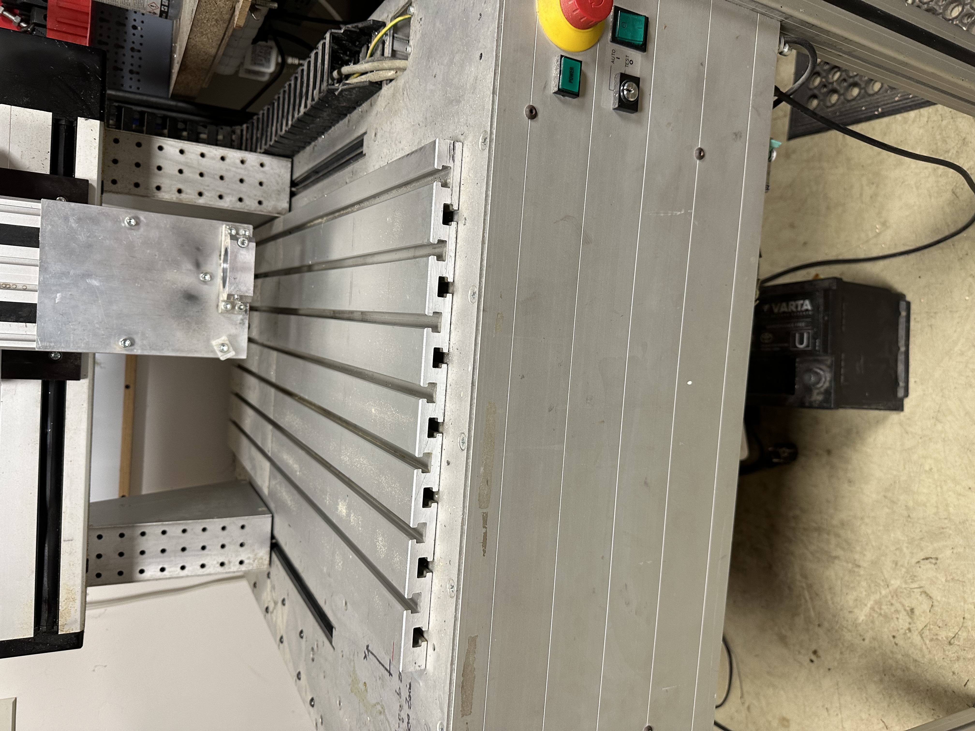 Stroj je nemecký výrobok, osi jazdia po lineárnych vedeniach (výroba ISEL), pohony sú KM+ guličkové skrutky. Tuhosť je veľmi slušná, bez problémov sa dá obrábať hliník a farebné kovy.