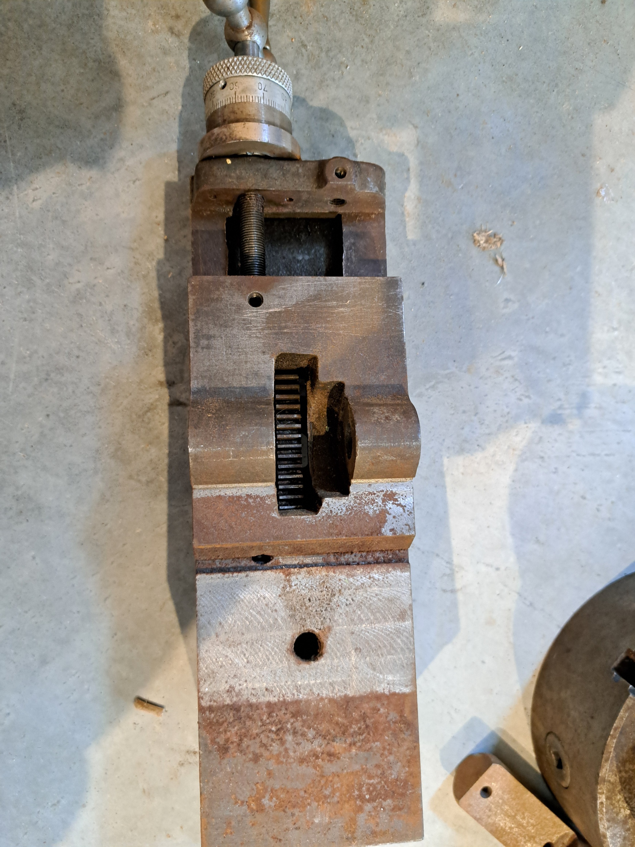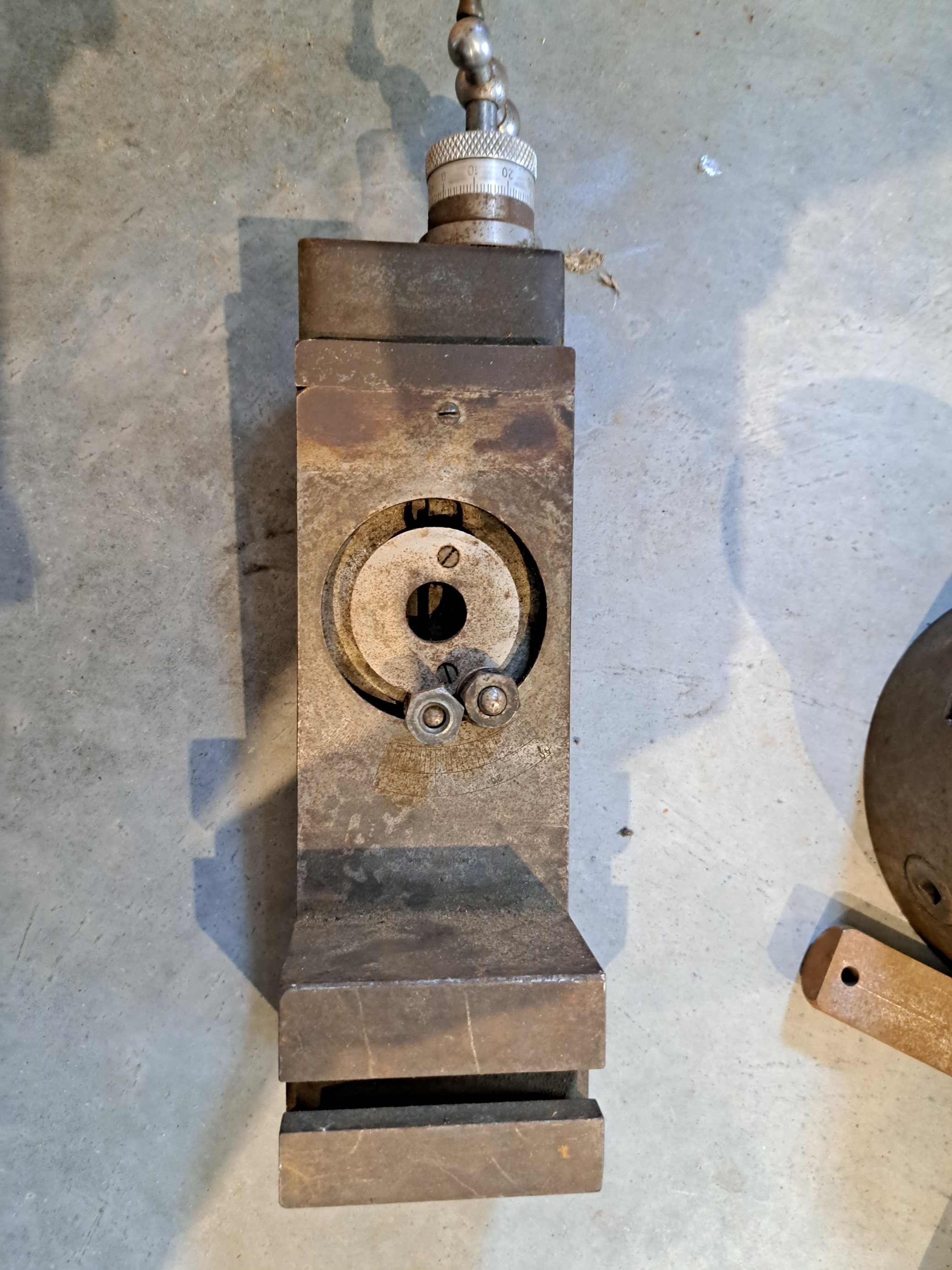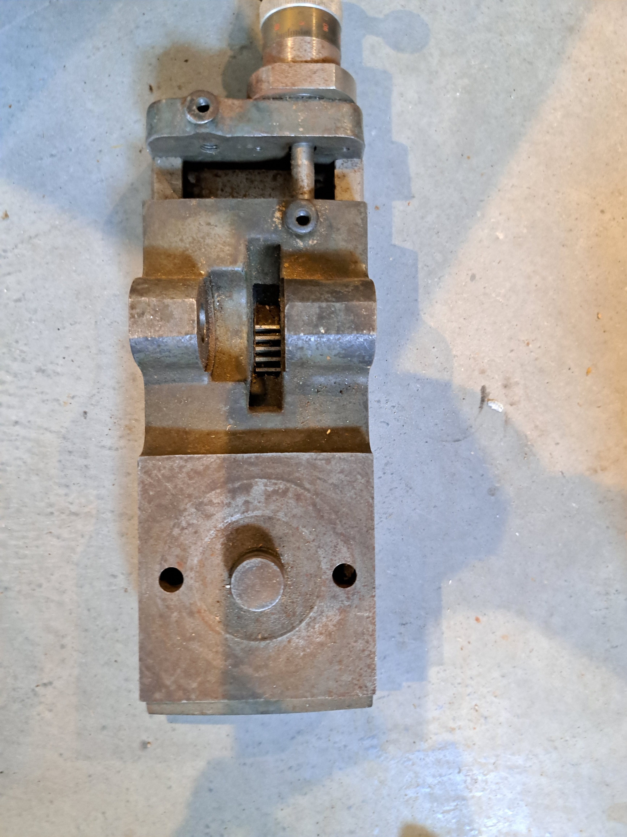 ja mám podobný z pákového sústruhu LORCH. V tom púzdre bola páka s pastorkom, ktorou sa pohybovala vrchná časť suportu, skrutka vpredu slúžila na vymedzenie chodu.