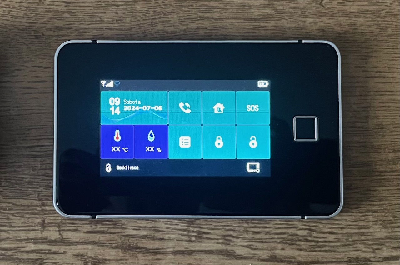 Nabízím použitý WiFi GSM Alarm - možnost bezplatného provozu alarmu i bez GSM karty pouze přes notifikace z internetu. Možno připojit bezdrátová i drátová čidla. Senzor otisku prstu.
