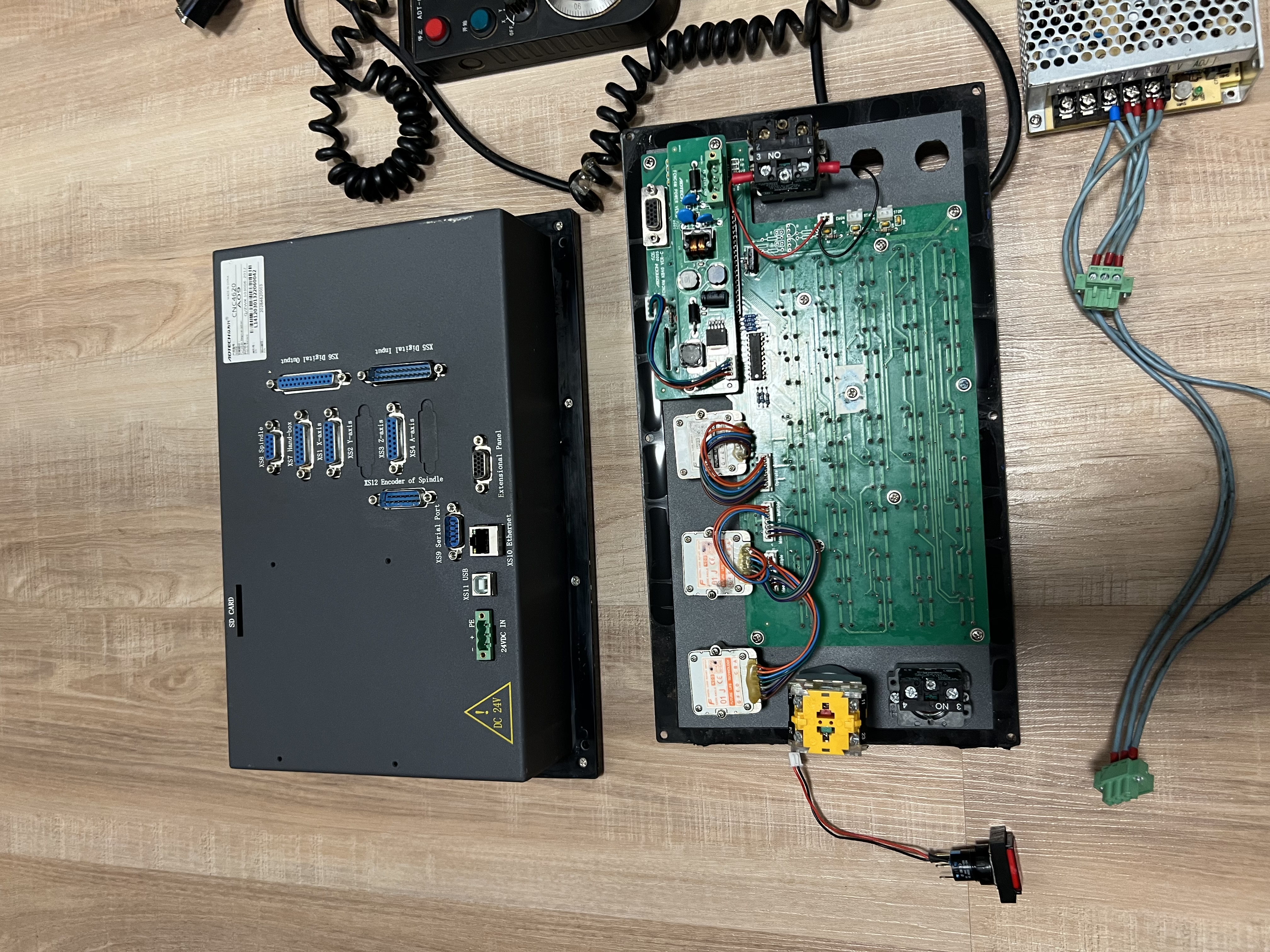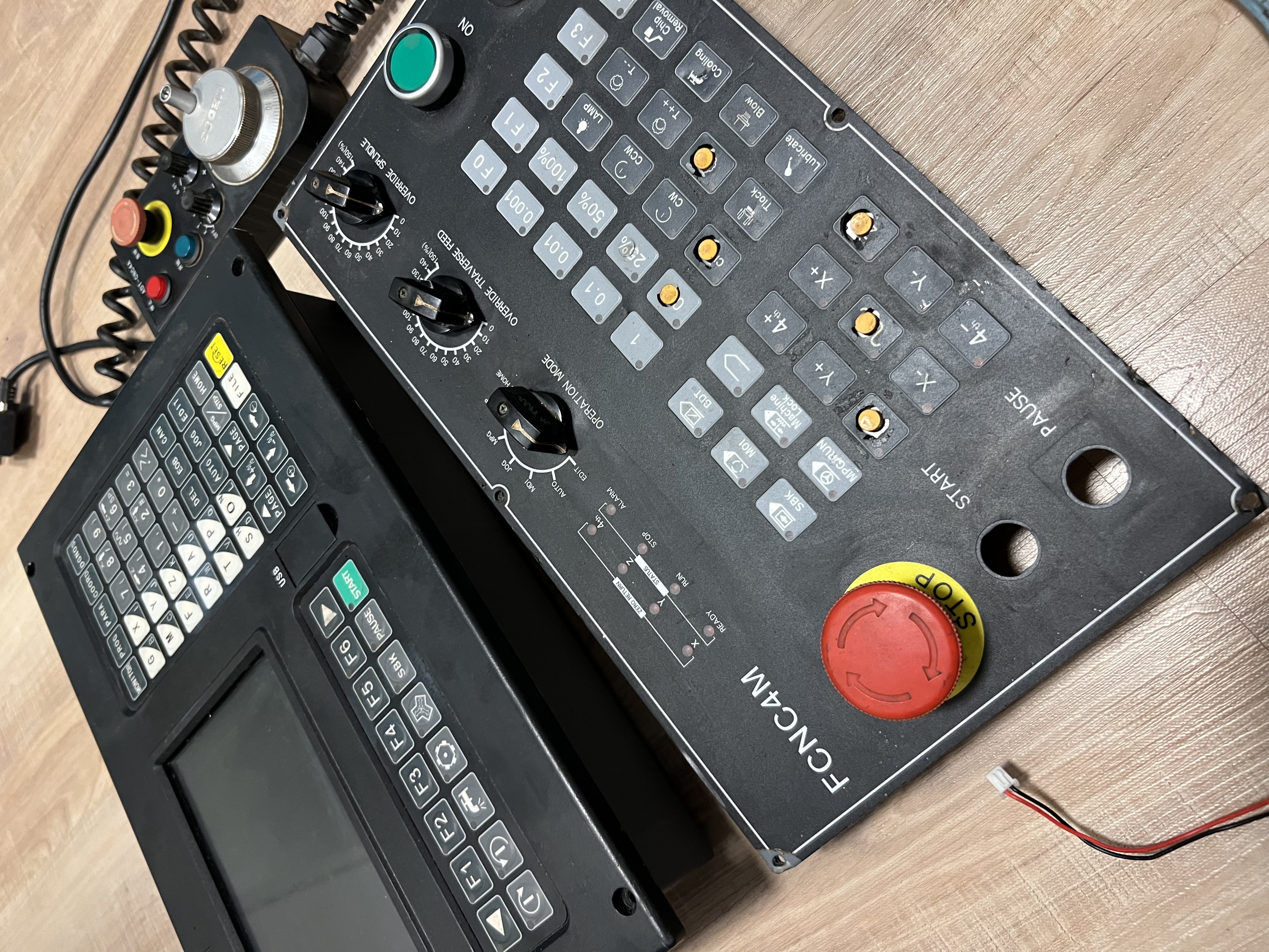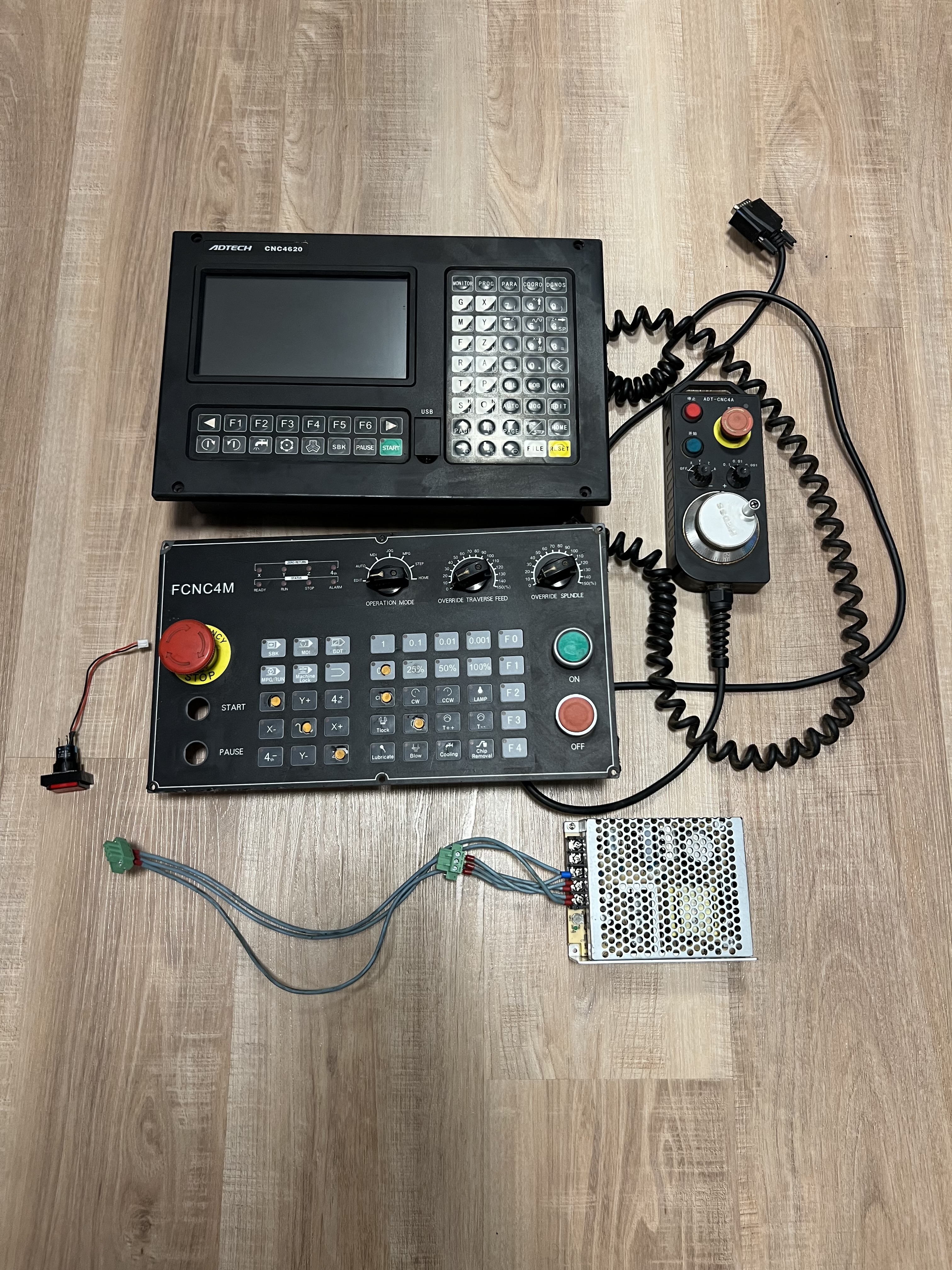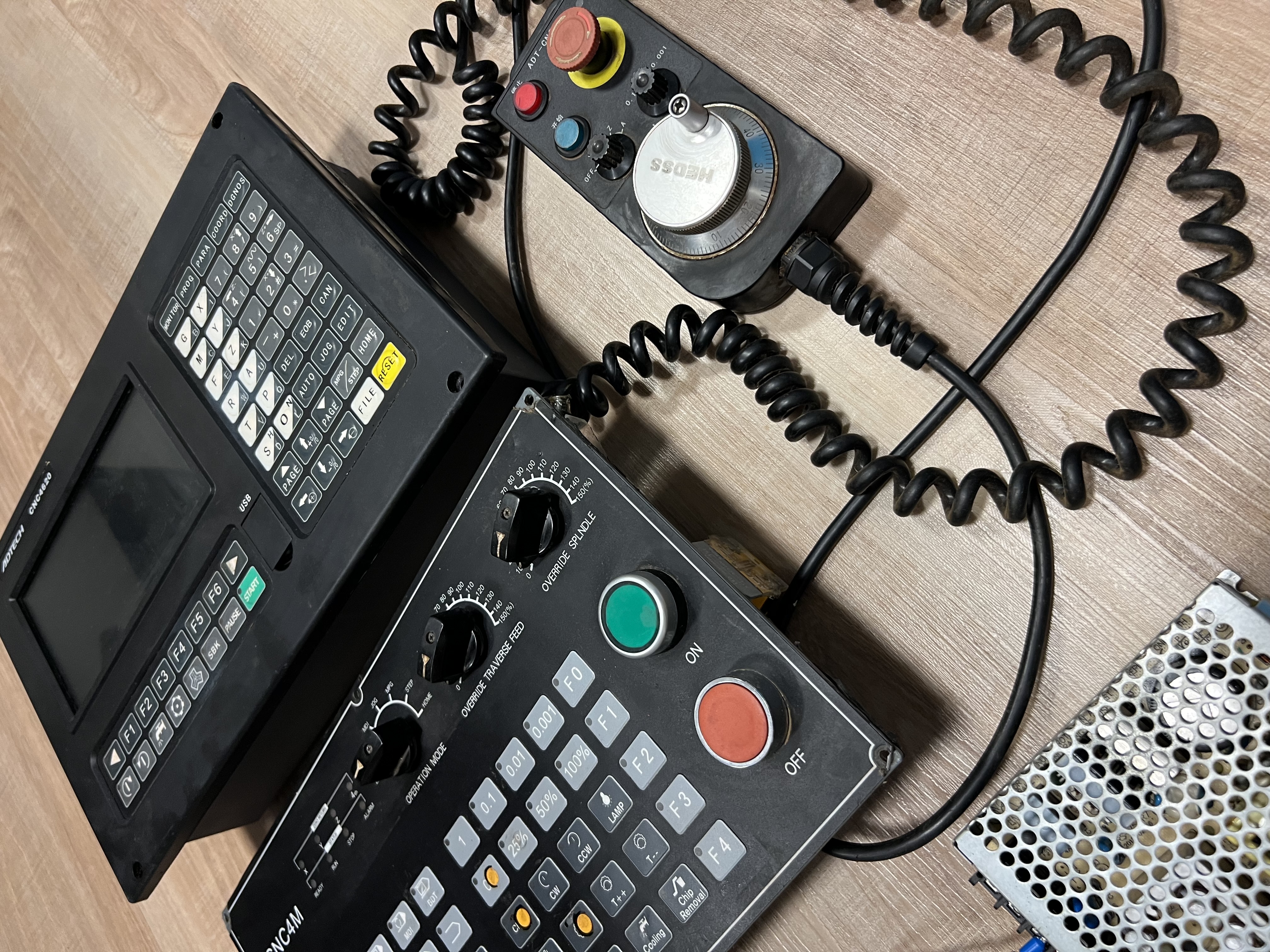 Prodám používané profi řízení CNC soustruhu ADTECH CNC 4620 s pomocným panelem FCNC4M, ručním kolečkem a zdrojem. Systém před vymontováním ze stroje fungoval, poškozená je folie pomocného panelu, a také chybí tlačítka na start a stop, ale jsou to obyčejné tlačítka, nic co by se nedalo dokompletovat. Retrofit stroje dělal pan Kotouček z retrofitu. Více info v sz