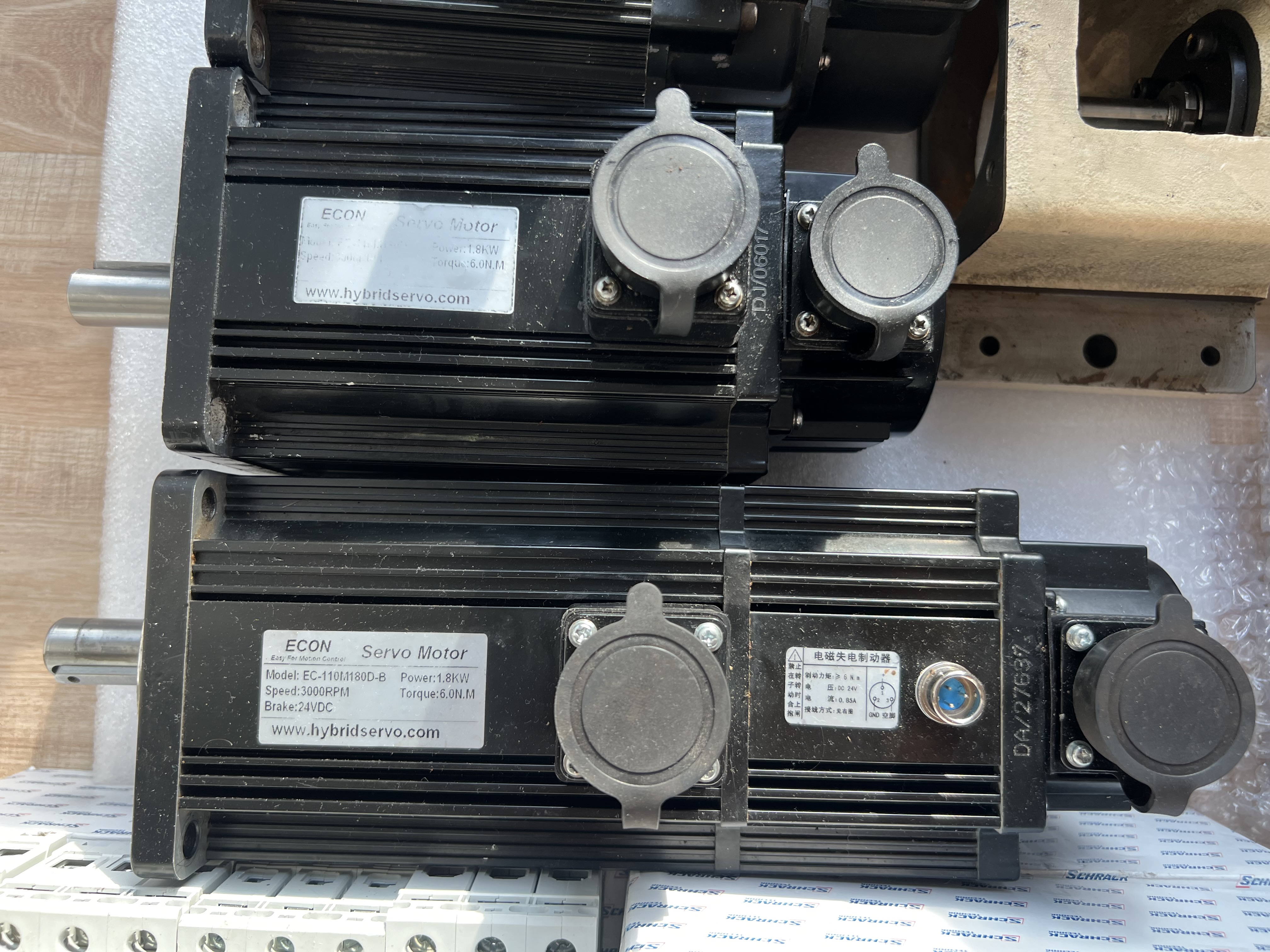 Prodám servomotory, drivery a konektory. Jeden servomotor s brzdou, druhý bez brzdy, kabely jsou ustřižené, ale ve všech konektorech jsou (i k motorům) zbytky kabelu, je tam obyčejný kabel, u enkodéru obyč stíněný, nic nákladného. Bylo to vytaženo ze soustruhu který šel na likvidaci protože se vydřelo lože ale byl to retrofit, proto jsou ty komponenty relativně nového data. Vše dělal pan Kotouček z retrofitu. Prodám oba zároveň, nechci to kouskovat, jeden motor se prodává špatně.