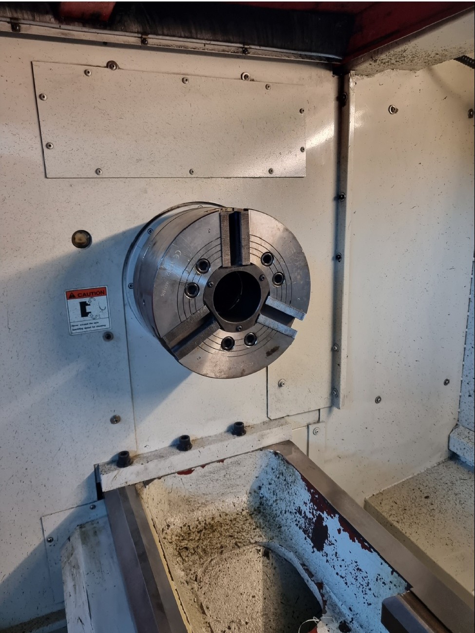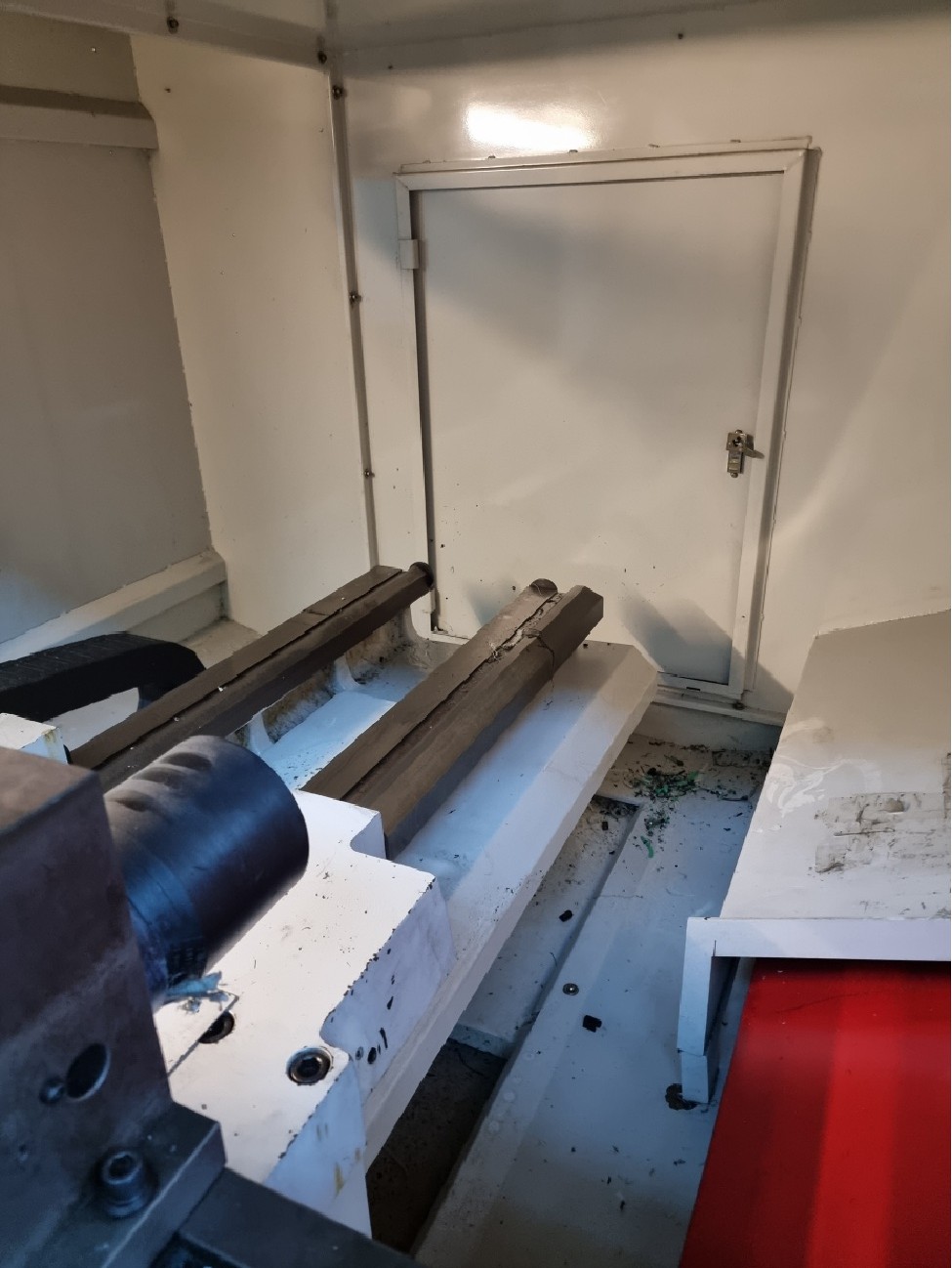 Zatím jsem nesehnal návod, takže zatím neznám maximální hmotnost obrobku letmo a podepřenou koníkem. Je to stroj s dosti velkým oběžným průměrem nad ložem 840mm a nad suportem 540mm. Točná délka je 1500mm. Podle mne je soustruh vzhledem k obráběcím možnostem dost lehký -4100kg a subtilní, lože bych přirovnal k SU40 -SU50. Vnější šířka lože je 449mm a mezera v loži pod koníkem je 200mm. Šířka pro koníka je 290mm.