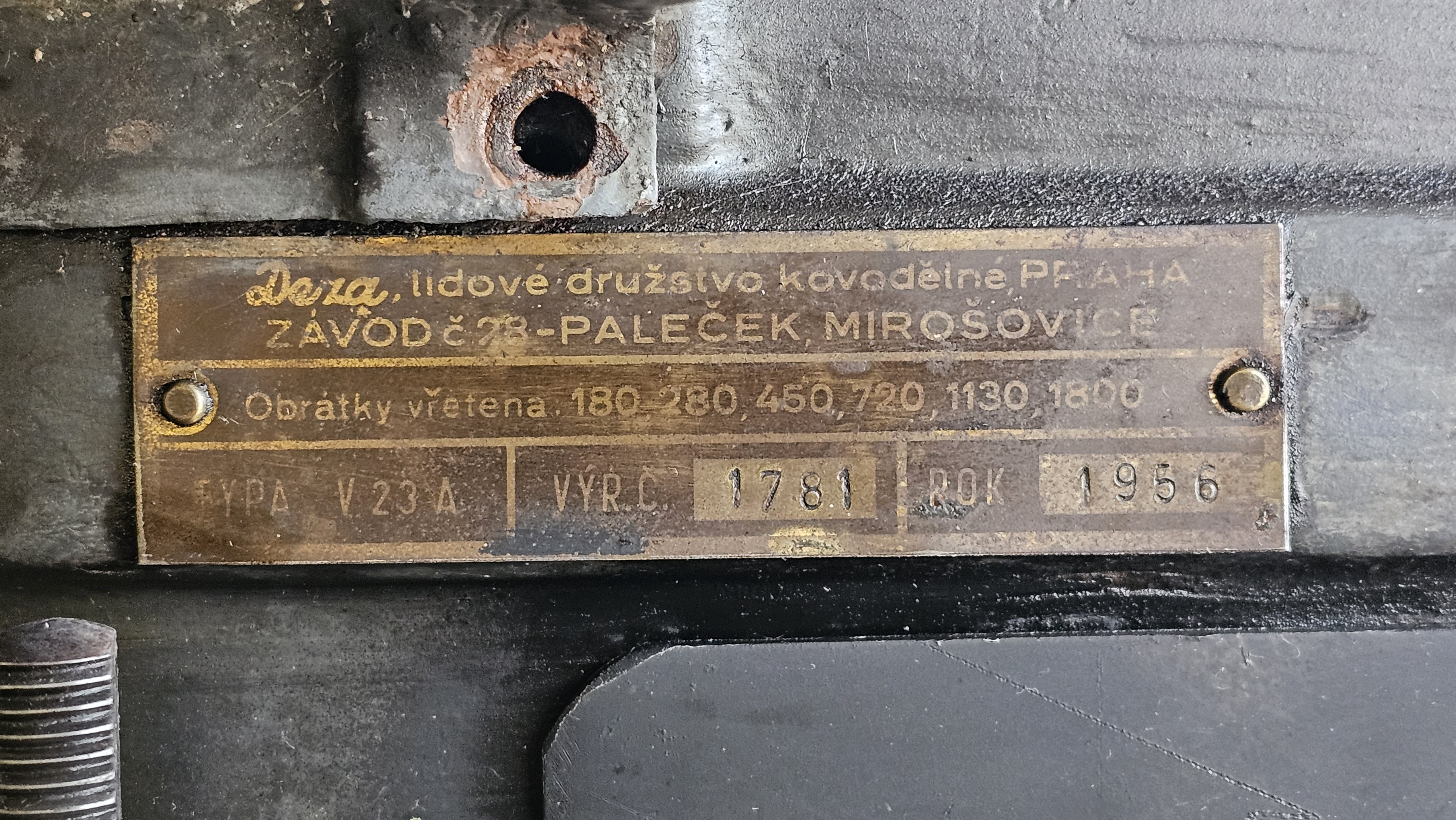 Tam není vlastně ani co fotit, ta vrtačka je uplně jednoduchá, a pochybuju že k ní na netu bude nějaký jiný info. Já ji tenkrát dostal, akorát se tam musel dodat nějaký motor a řemenice. Ten štítek tam mám, myslím že tam stojí Jan Paleček, Dačice, nebo tak. Na tom předním deklu mám iniciály JP.