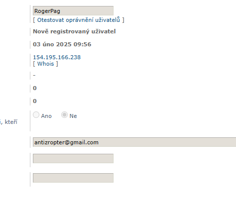 Občas mívám při schvalování pochybnosti a tak krom whois, taky hledám doménu ve které je mail. Pokud je to yahoo nebo něco takovýho tak to mažu, několikrát jsem už mazal jednoho, který to linkuje přímo na doménu .ru Někdy mi zase trochu cuká koutek, když zejména starší uživatelé vyplňují pole opravdu pečlivě...