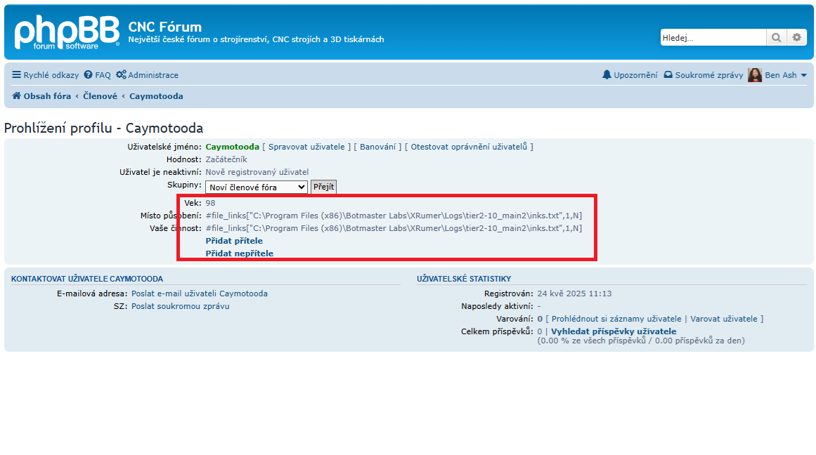 Ted jsem se dival na svoje registracni udaje a u kolonky Uzivatelske jmeno je podle mne nenahrazeny retezec, viz nize.