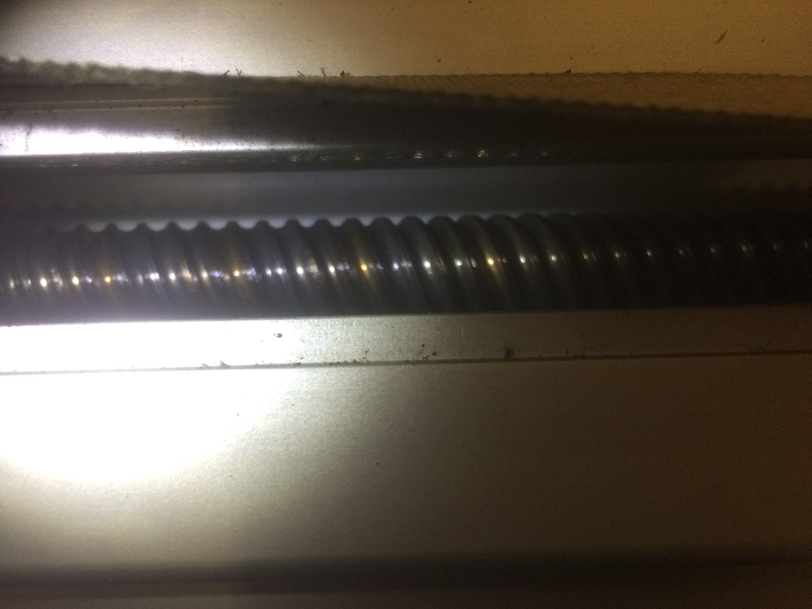 Kuličkáče jsou netknuté, olej na nich je stále čistý, posuv je hladký, zkoušel jsem vůli, zatím jen prstem, necítím žádnou. Nosnej jekl je v pohodě, nepoškozenej, vodící tyče netknuté. Vozík, respektive vedení je tuhý, ale chodí krásně.