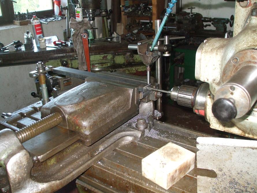 Určite by som to vrtal na frézke. Ideálna je na to krížová hlava, ale aj klasická zvislá sa dá otočiť do vodorovnej polohy. Tam by bol síce problém s nízkym zverákom, no buď sa dá podložiť, alebo, ak je, použiť otočno -naklápocí zverák, ktorý by mal byť dosť vysoký, aby to vydalo. Vyindigovať hlavu, zverák a nemôže ten otvor uhnúť.