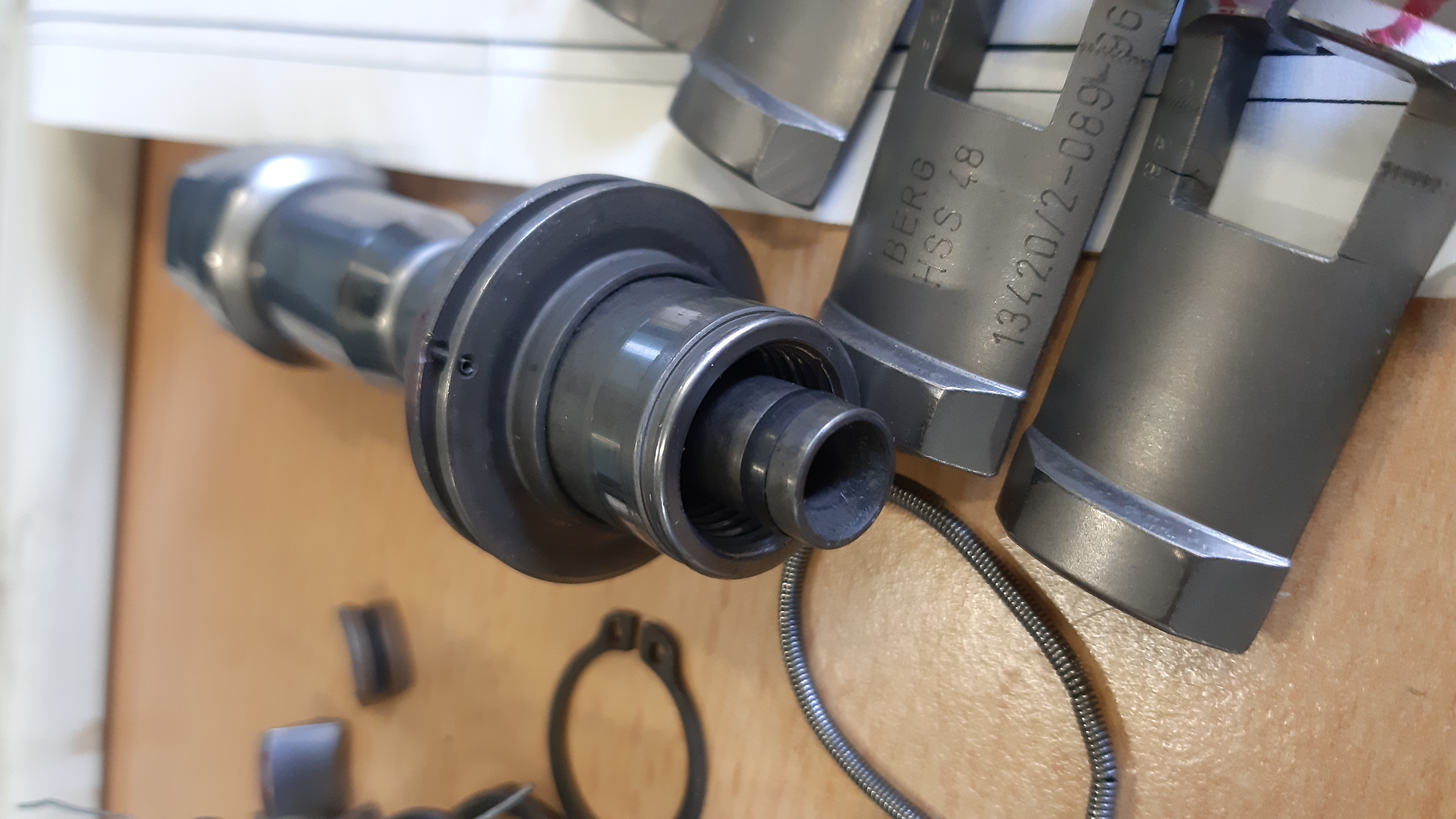 Hodím sem pár fotek rozborky poškozeného vtahovacího mechanismu HSK63A označeného jako HSS 48. Uvidíme jak moc to půjde rozebrat :lol: