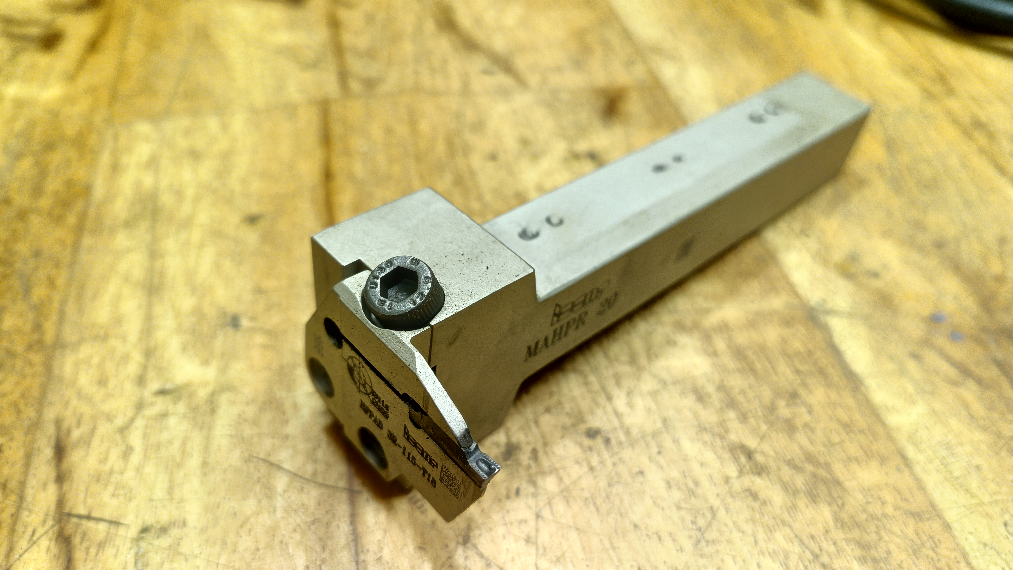 Na foto je plátek co funguje skvěle na cnc (tuhém), na klasice bude fungovat taky, když se plátek nabrousí ostrý jak břitva. Čím měkčí mašina, tím ostřejší nože (positivní úhel břitu). Bude to fungovat i na houževnatých materiálech jak nerez, ale daní je nižší životnost plátku.